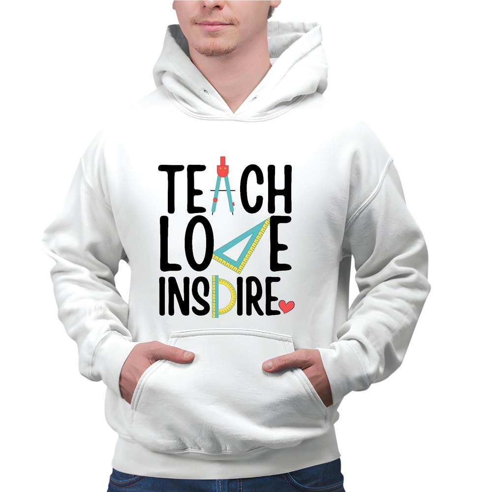 Teacher Teach Love Inspire Teacher Appreciation for Teacher Elementary Teacher Gray and Muticolor Unisex Hoodie