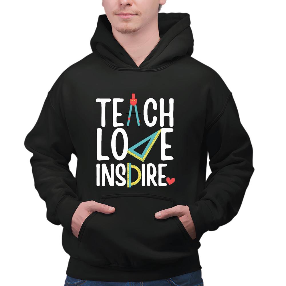 Teacher Teach Love Inspire Teacher Appreciation for Teacher Elementary Teacher Black and Muticolor Unisex Hoodie
