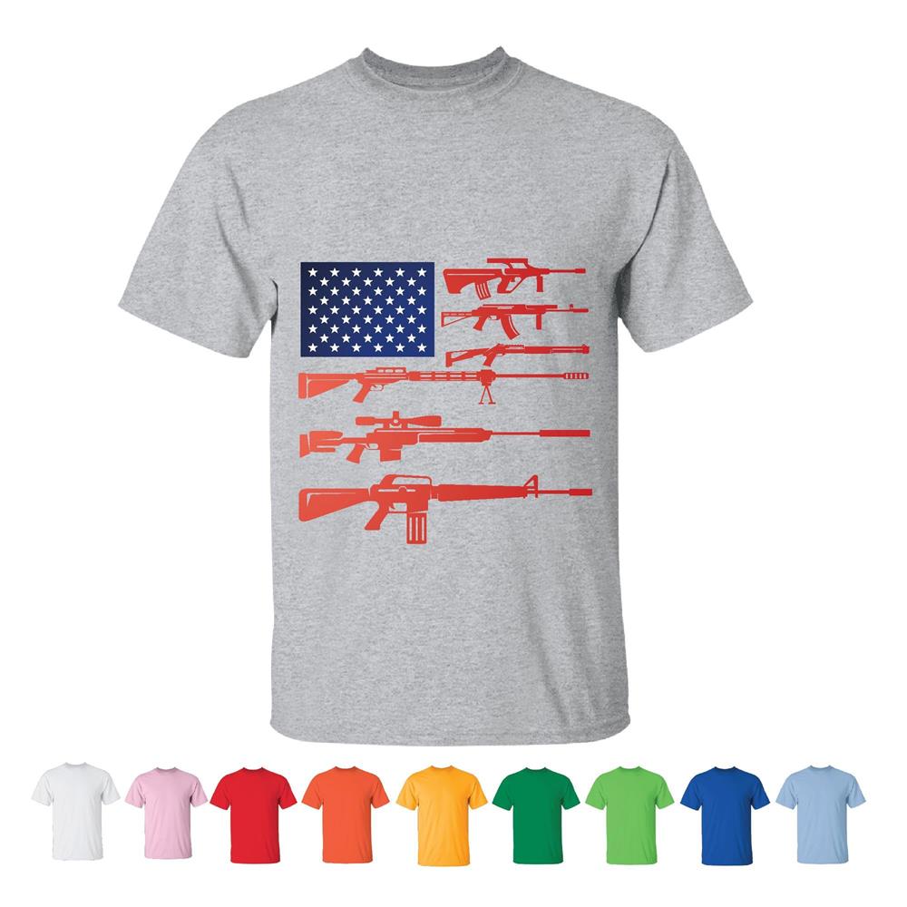 Tee Gift for 2nd Amendment Supporters US Flag Gun Rights Men Women White Gray T shirt