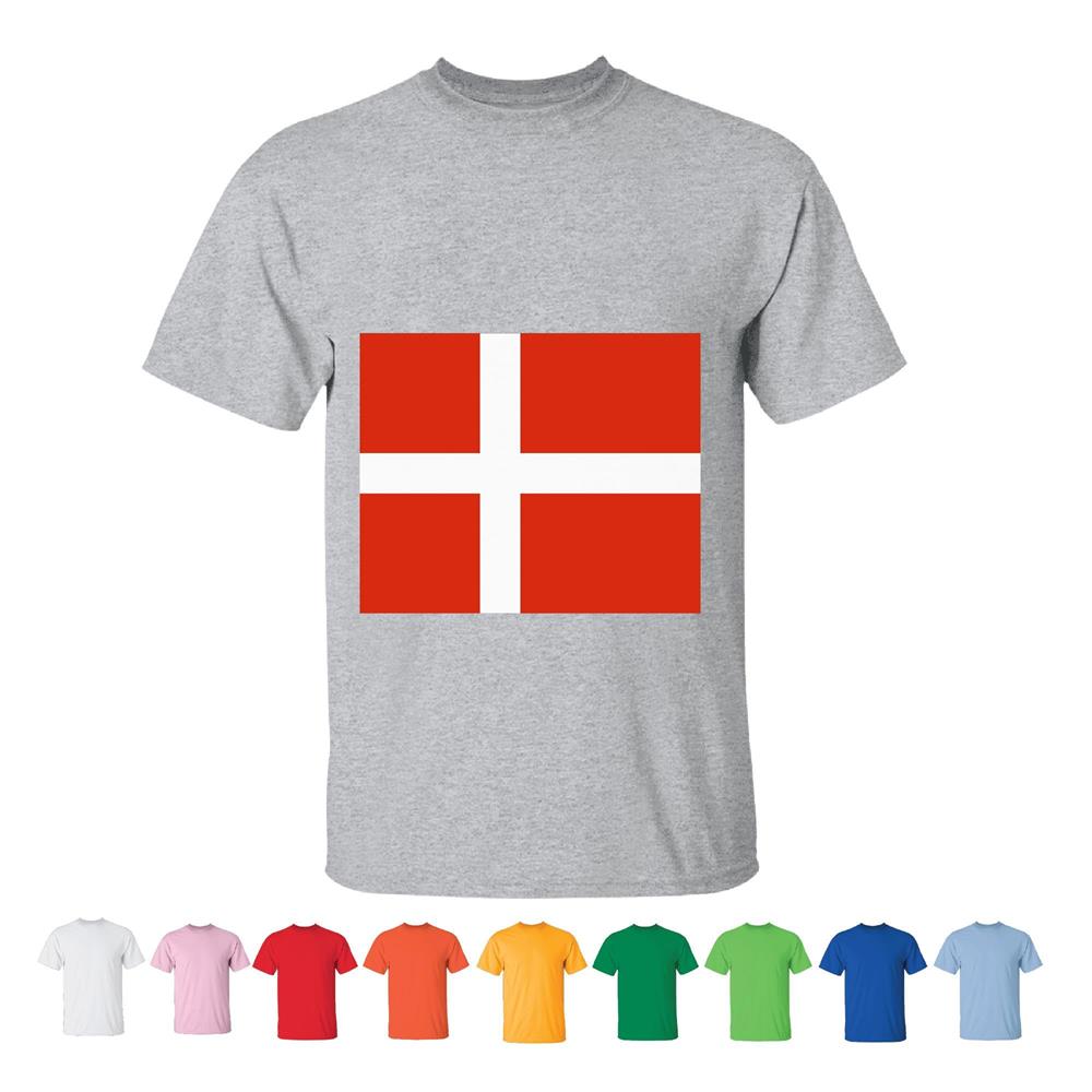 Tee Gift Flag of Denmark for Danish Scandinavian Red Cross Fans Men Women White Gray T shirt