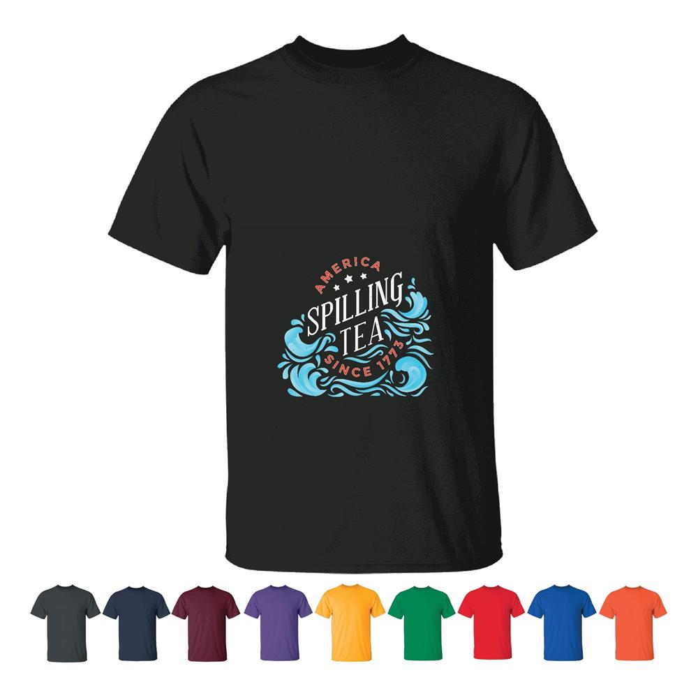 Tee Gift for American History Lovers Spilling Tea Quote Since 1773 with White Stars and Waves Men Women Black T shirt