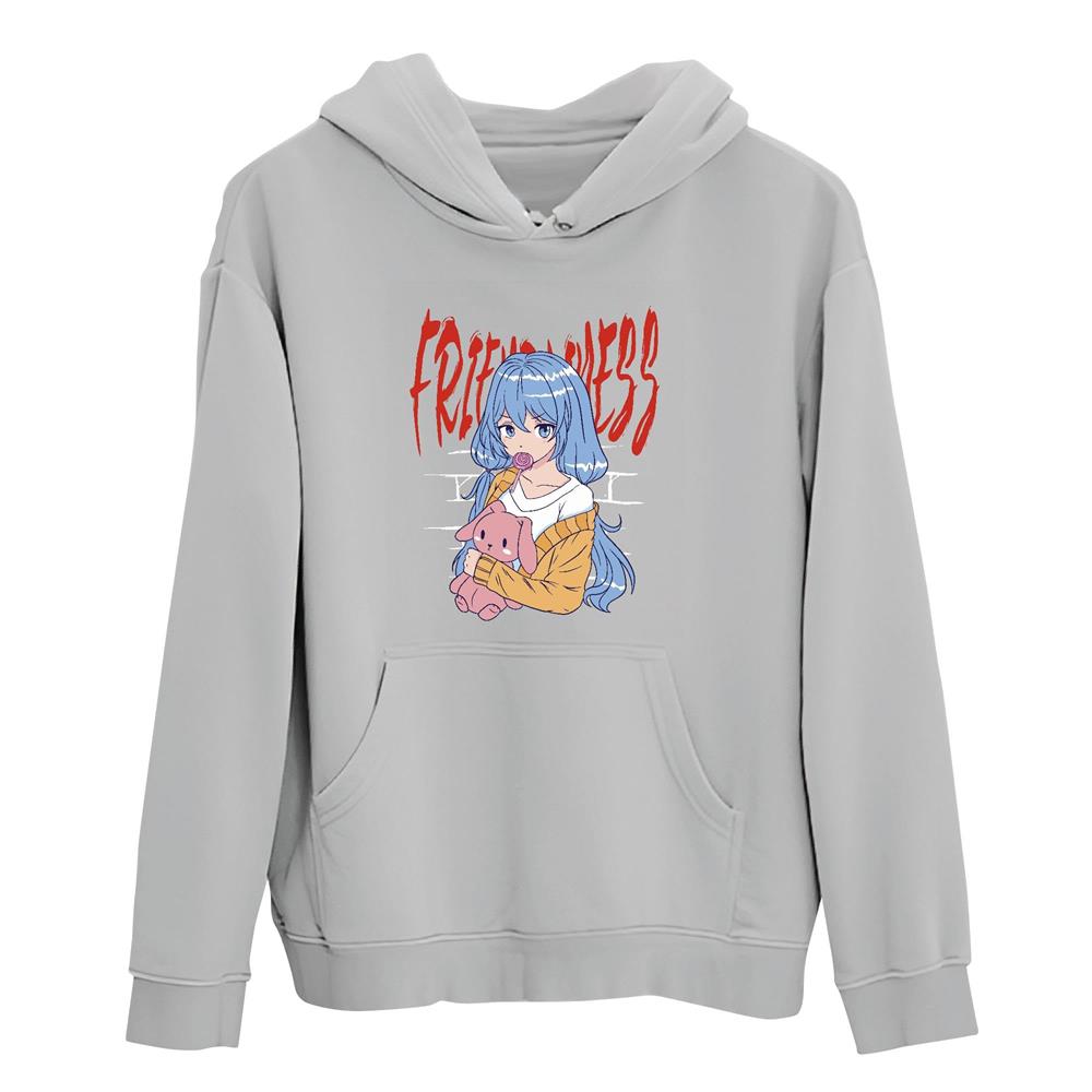 Tee Gift for Anime and Toy Rabbit Lovers Cool Girl Eating Lollipop Design Gray and Muticolor Unisex Hoodie