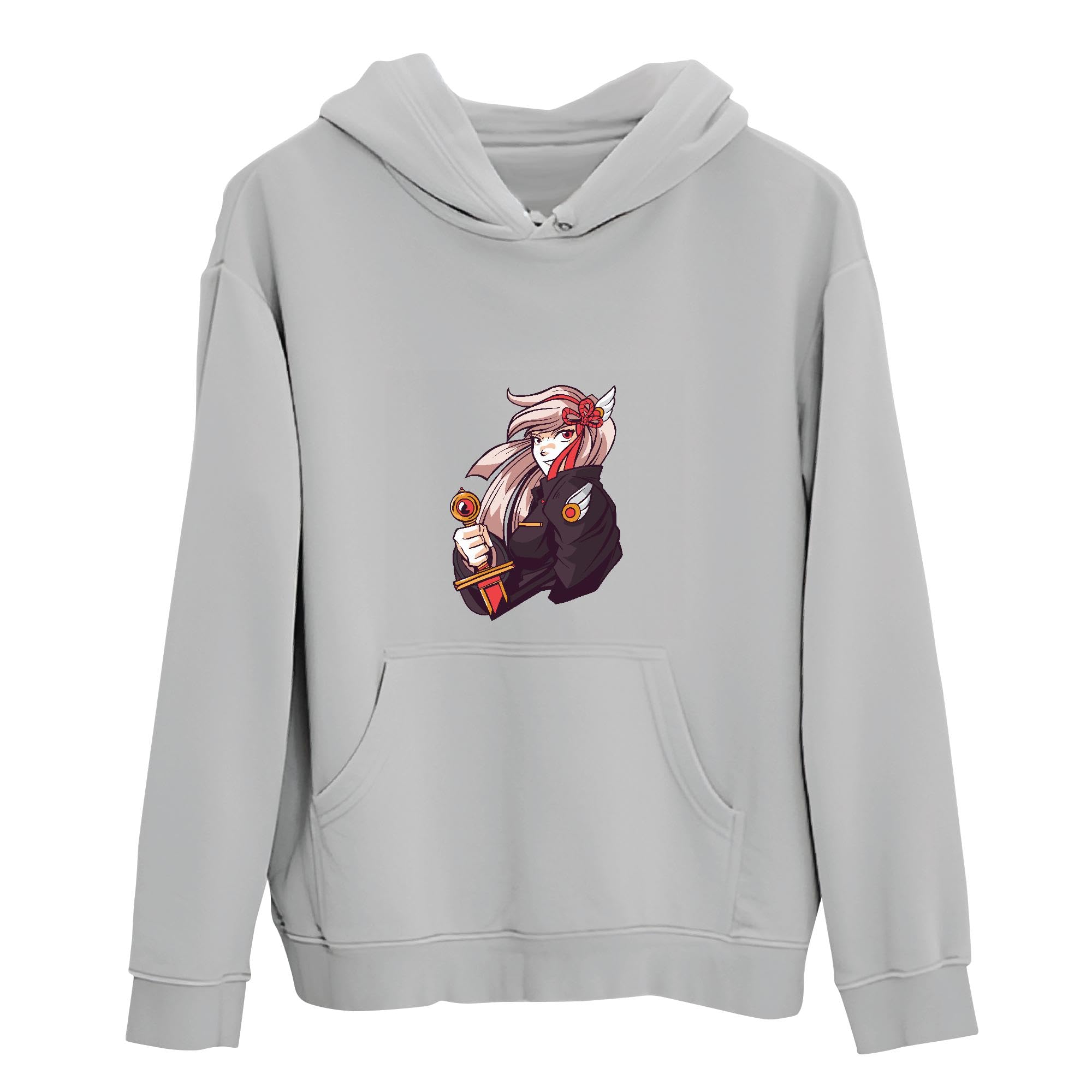 Tee Gift for Anime Fans Anime Girl with Sword for Kids and Adults Gray and Muticolor Unisex Hoodie