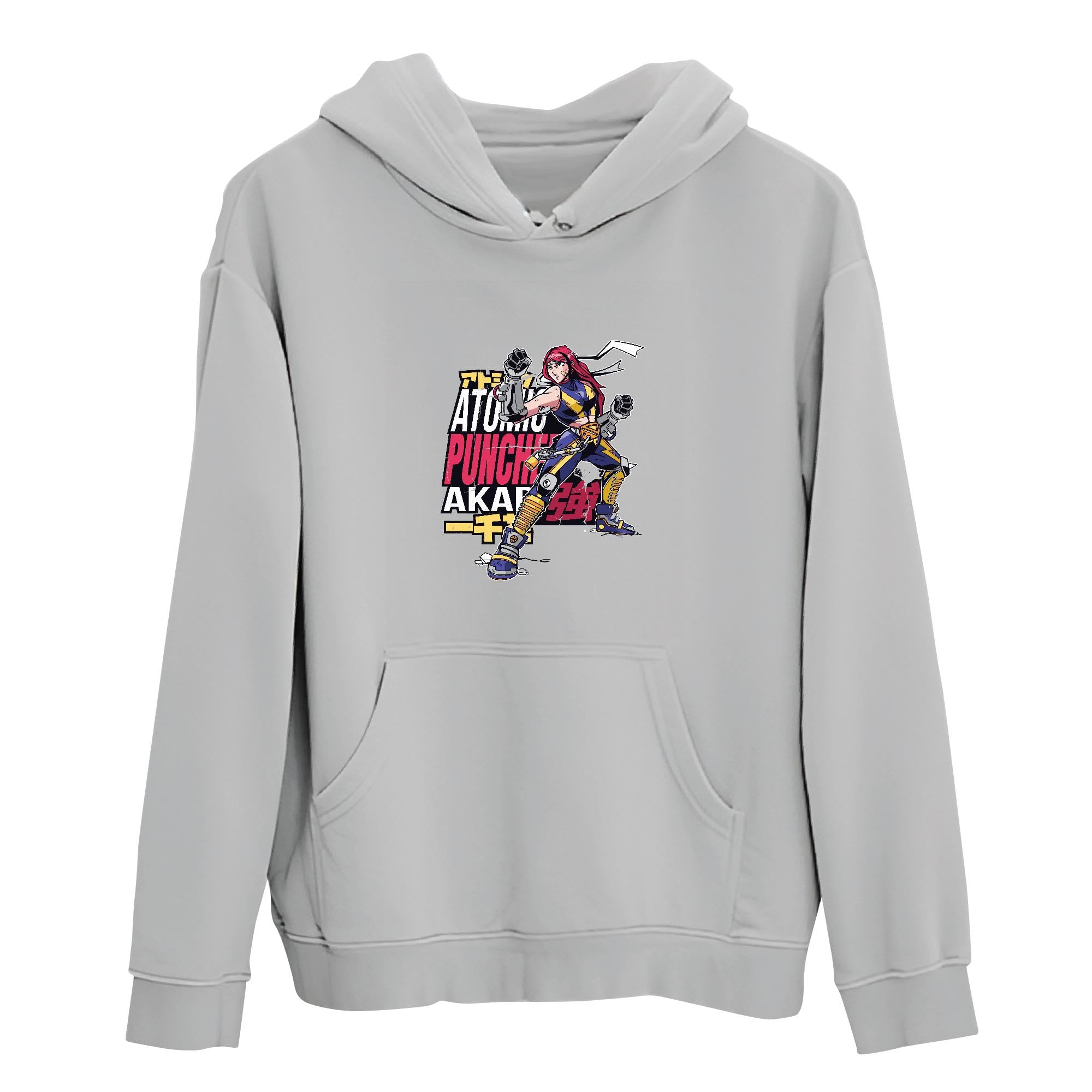 Tee Gift for Anime Fans Anime Fight Girl for Anime Lovers Gray and Muticolor Unisex Hoodie