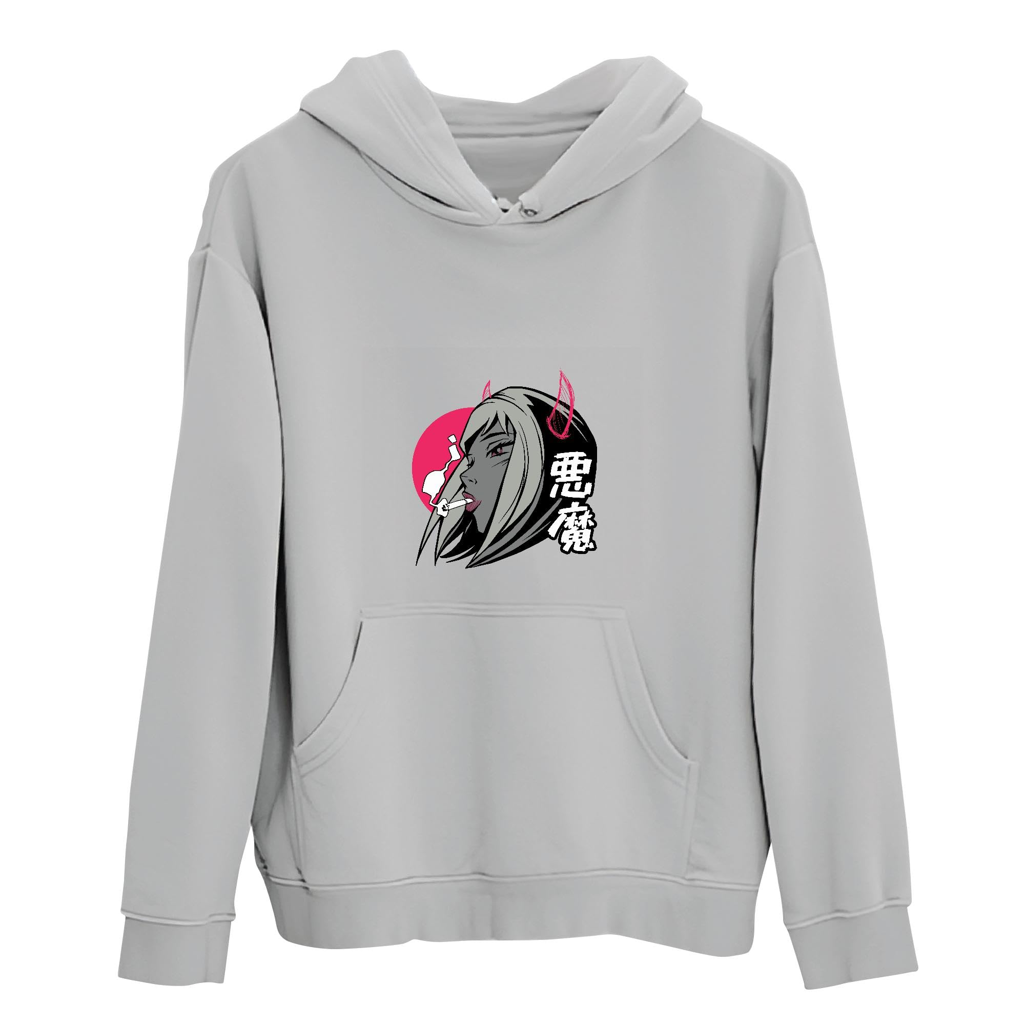 Tee Gift for Anime Fans Demon Girl with Horns Smoking Cigarettes for Anime Lovers Gray and Muticolor Unisex Hoodie