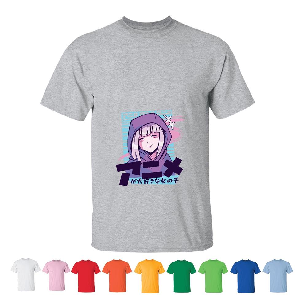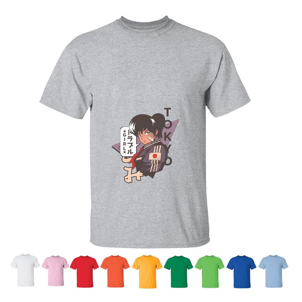 Tee Gift for Anime Fans Tokyo Illustration of Anime Girl Men Women White Gray T shirt
