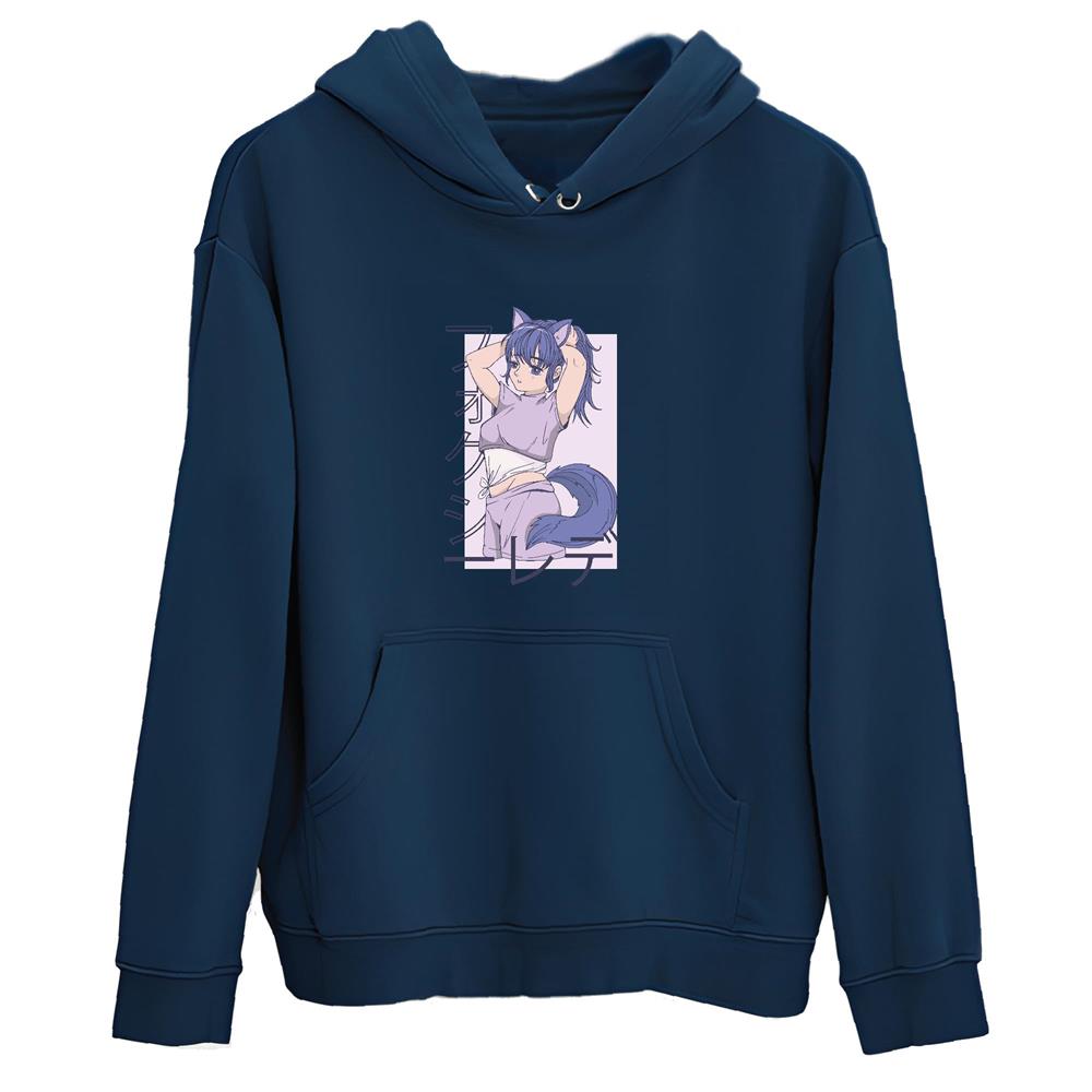 Tee Gift for Anime Foxy Lady Fans Unique Design Japanese Quote Navy and Muticolor Unisex Hoodie