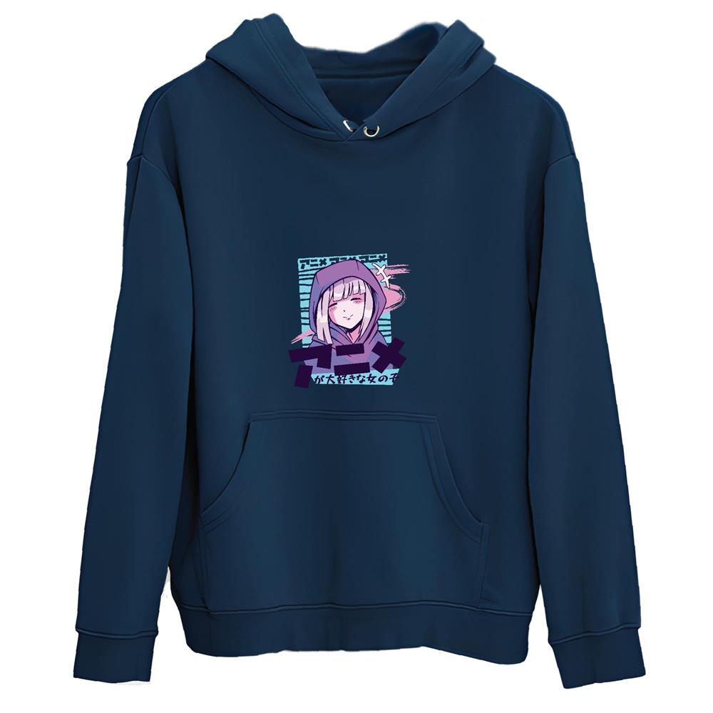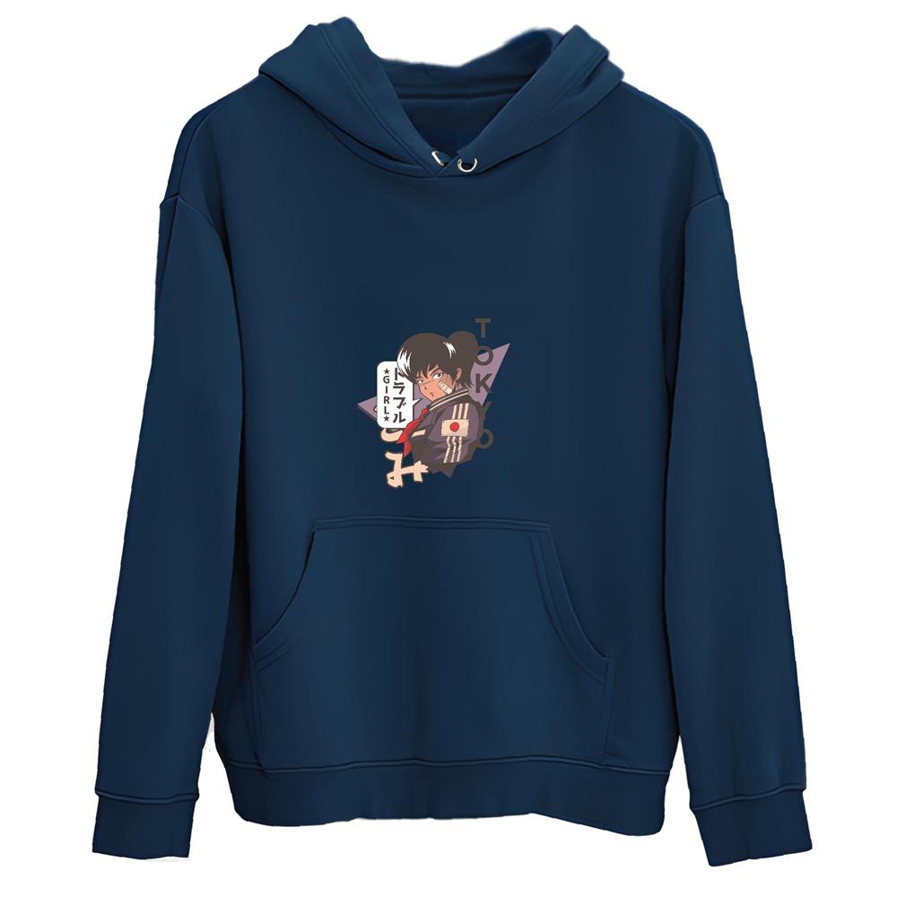 Tee Gift for Anime Fans Tokyo Illustration of Anime Girl Navy and Muticolor Unisex Hoodie