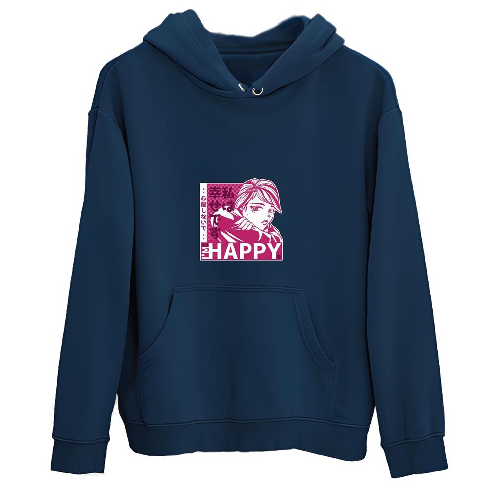 Tee Gift for Anime Fans Sad Anime Girl with I am Happy Caption for Teens and Adults Navy and Muticolor Unisex Hoodie