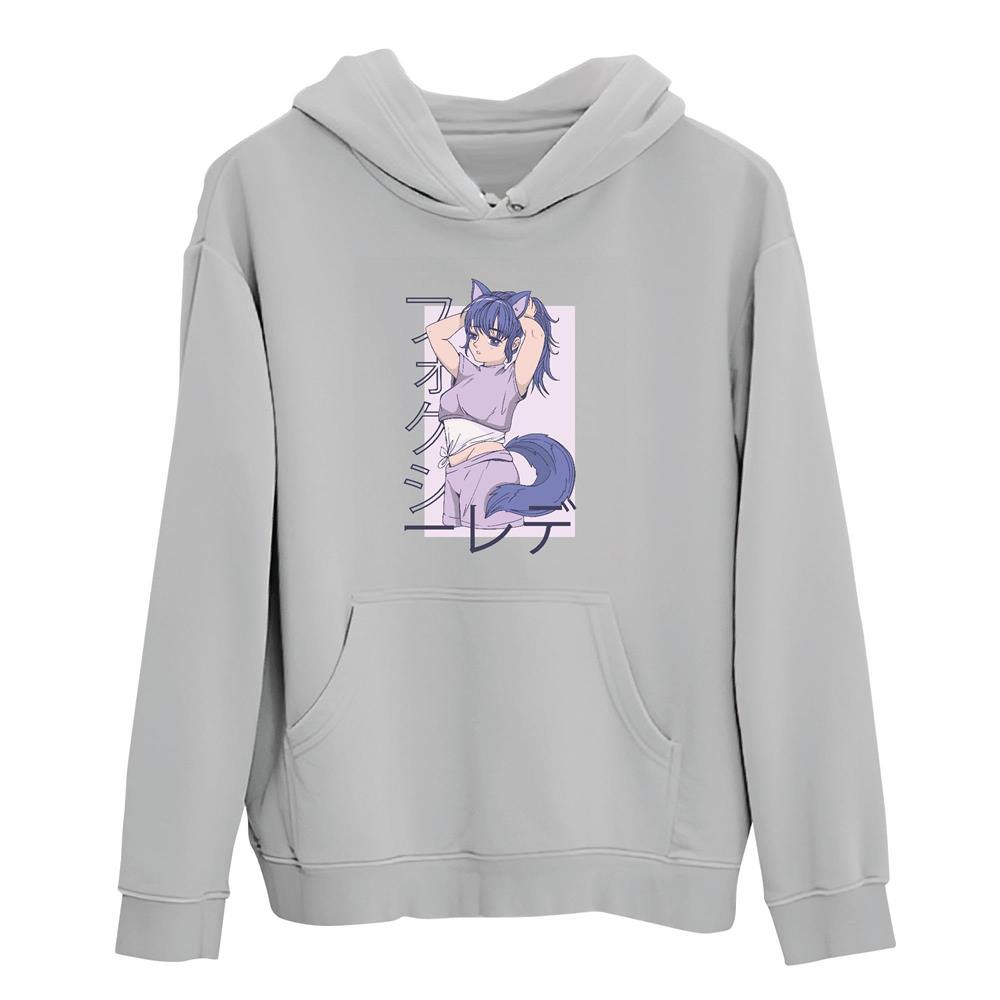 Tee Gift for Anime Foxy Lady Fans Unique Design Japanese Quote Gray and Muticolor Unisex Hoodie