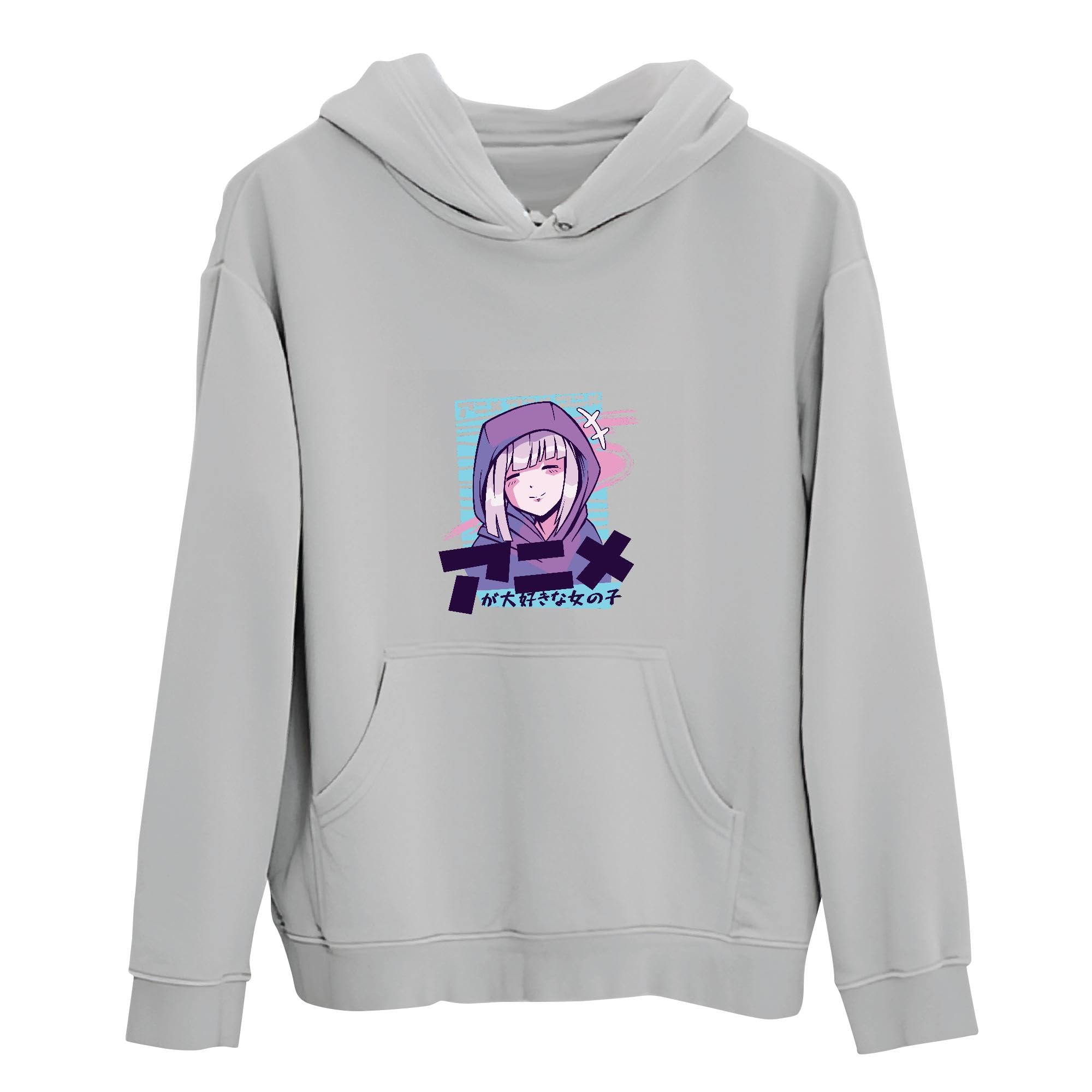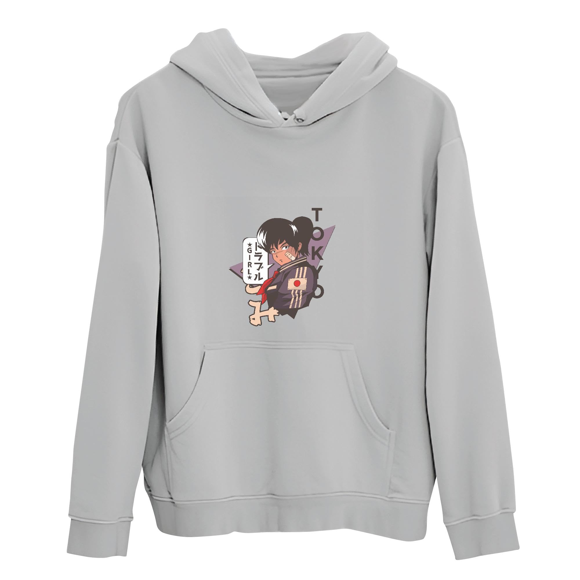 Tee Gift for Anime Fans Tokyo Illustration of Anime Girl Gray and Muticolor Unisex Hoodie