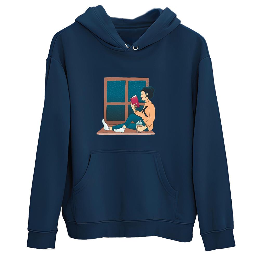 Tee Gift for Book Lovers Asian Girl Window Reading Woman Reading Book Next to Window Navy and Muticolor Unisex Hoodie