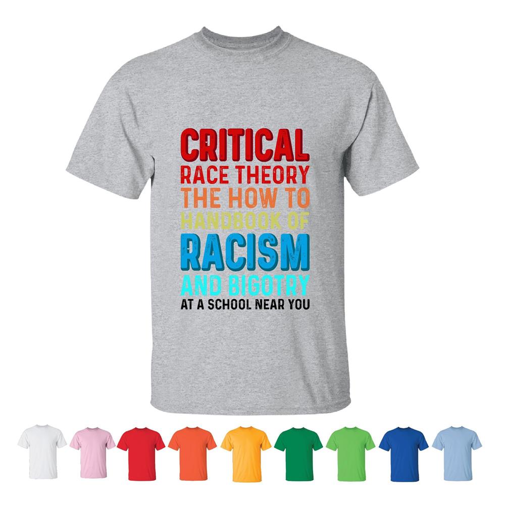 Tee Gift for Critical Race Theory Fans Is CRT Racist Men Women White Gray T shirt