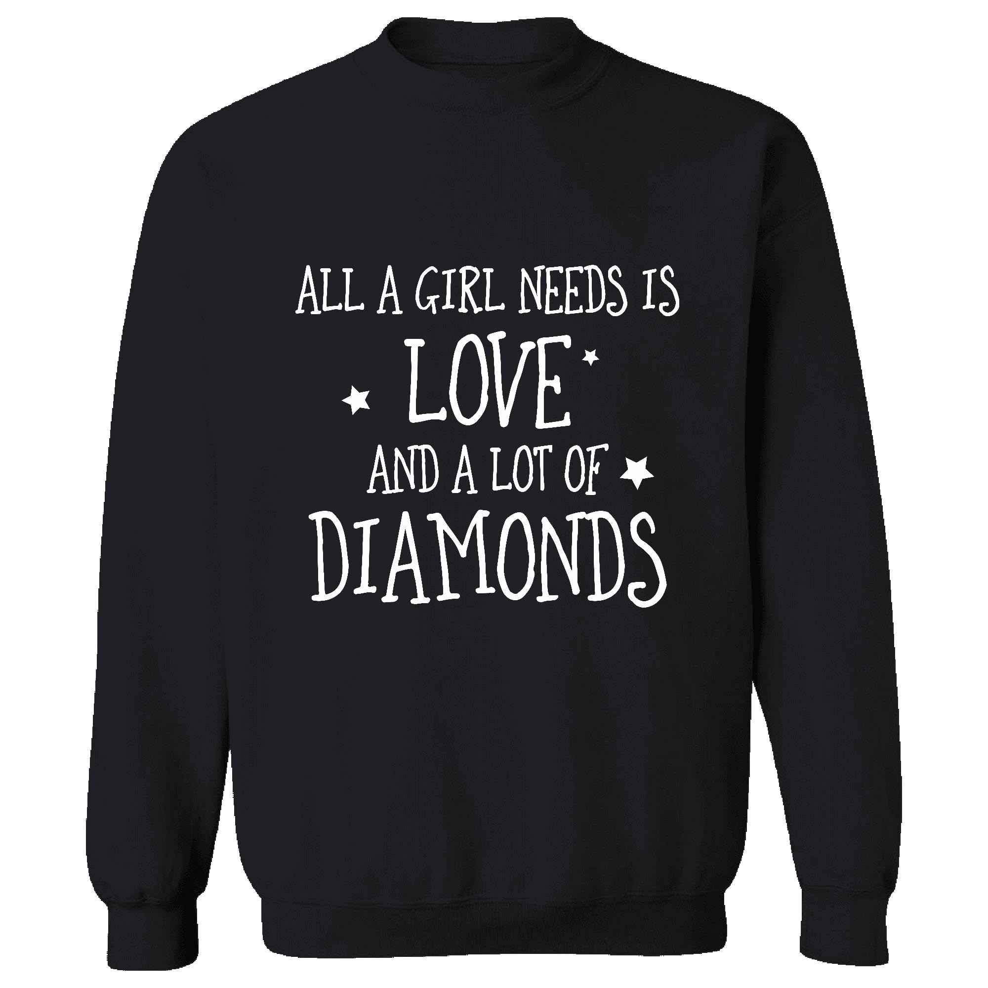 Tee Gift for Her All a Girl Needs is Love and Diamonds Black Muticolor Unisex Sweatshirt