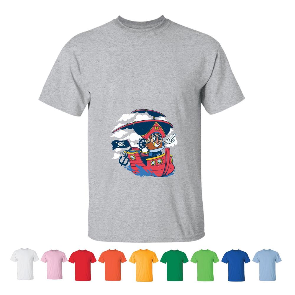 Tee Gift for Kids Cartoon Pirate Looking Ahead Fun and Creative Design for Boys and Girls Men Women White Gray T shirt