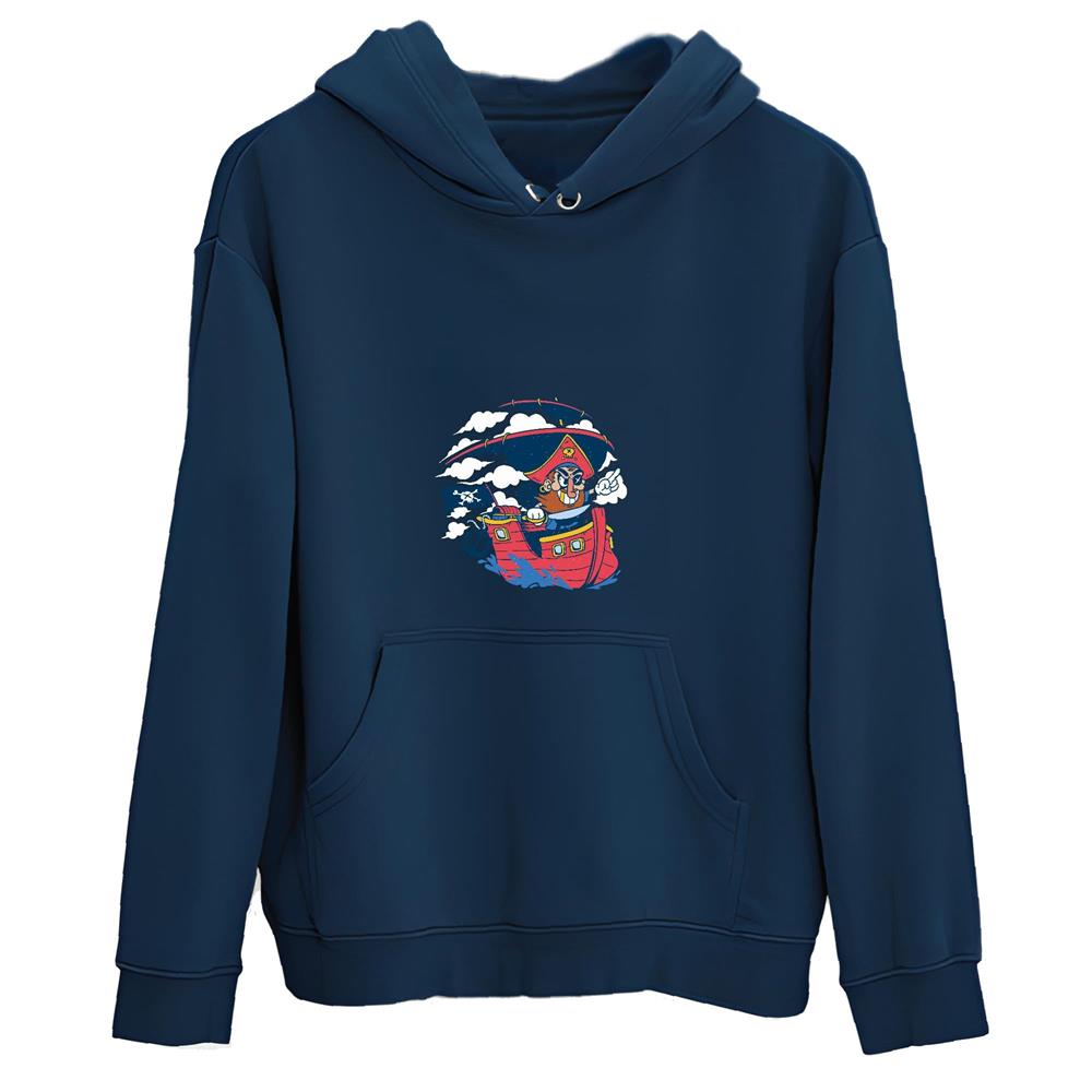 Tee Gift for Kids Cartoon Pirate Looking Ahead Fun and Creative Design for Boys and Girls Navy and Muticolor Unisex Hoodie