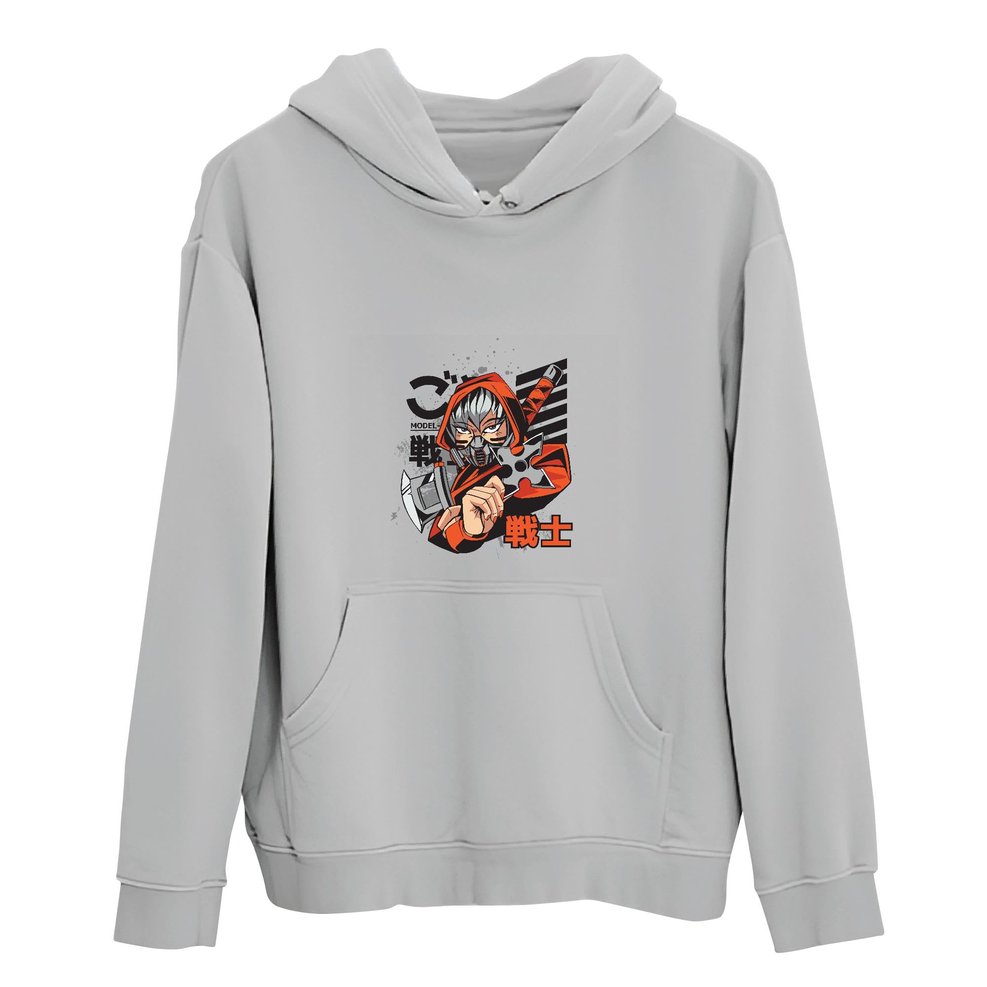 Tee Gift for Kids Ninja Girl Illustration Fun and Creative Design Gray and Muticolor Unisex Hoodie