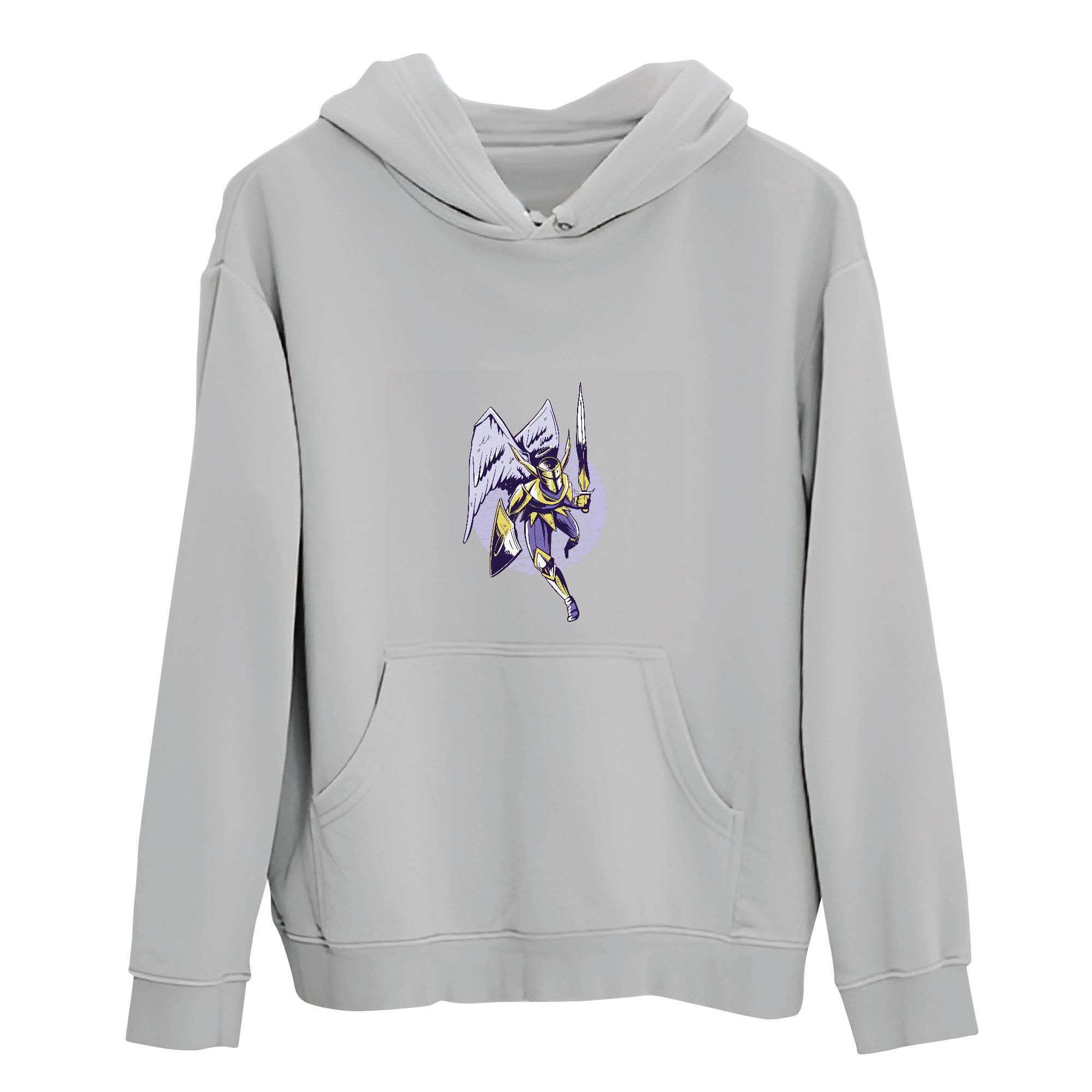Tee Gift for Kids Knight Angel Awesome Illustration for Boys and Girls Gray and Muticolor Unisex Hoodie