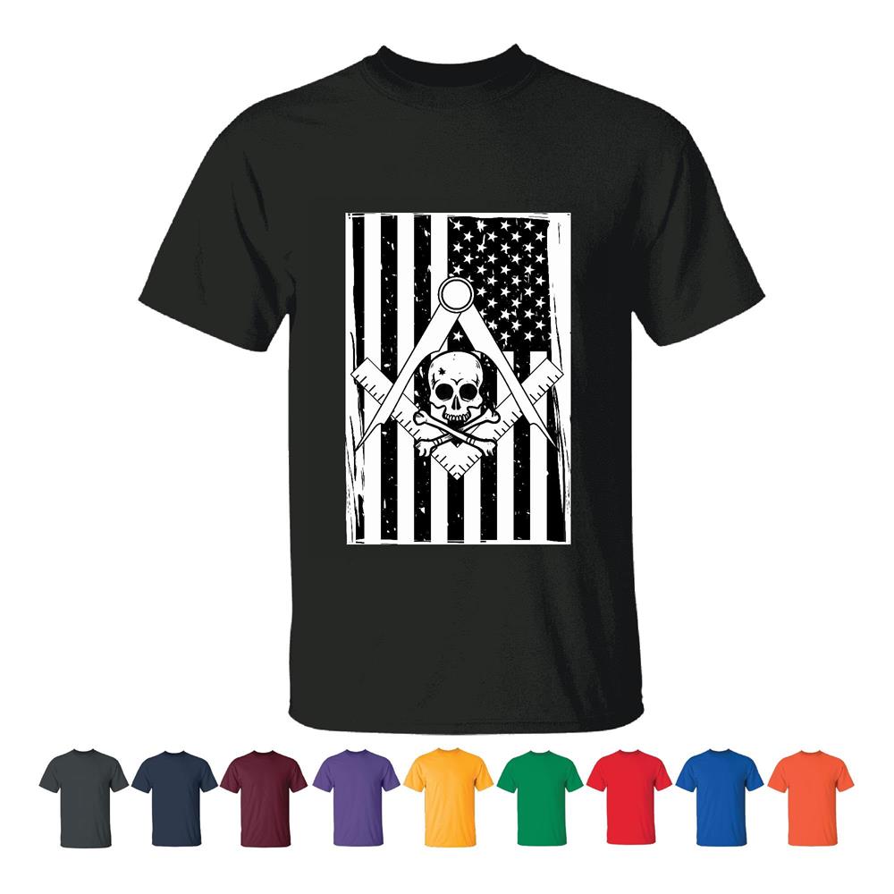 Tee Gift for Men American Flag Masonic Skullcap Novelty Humor Bones Men Women White Gray T shirt