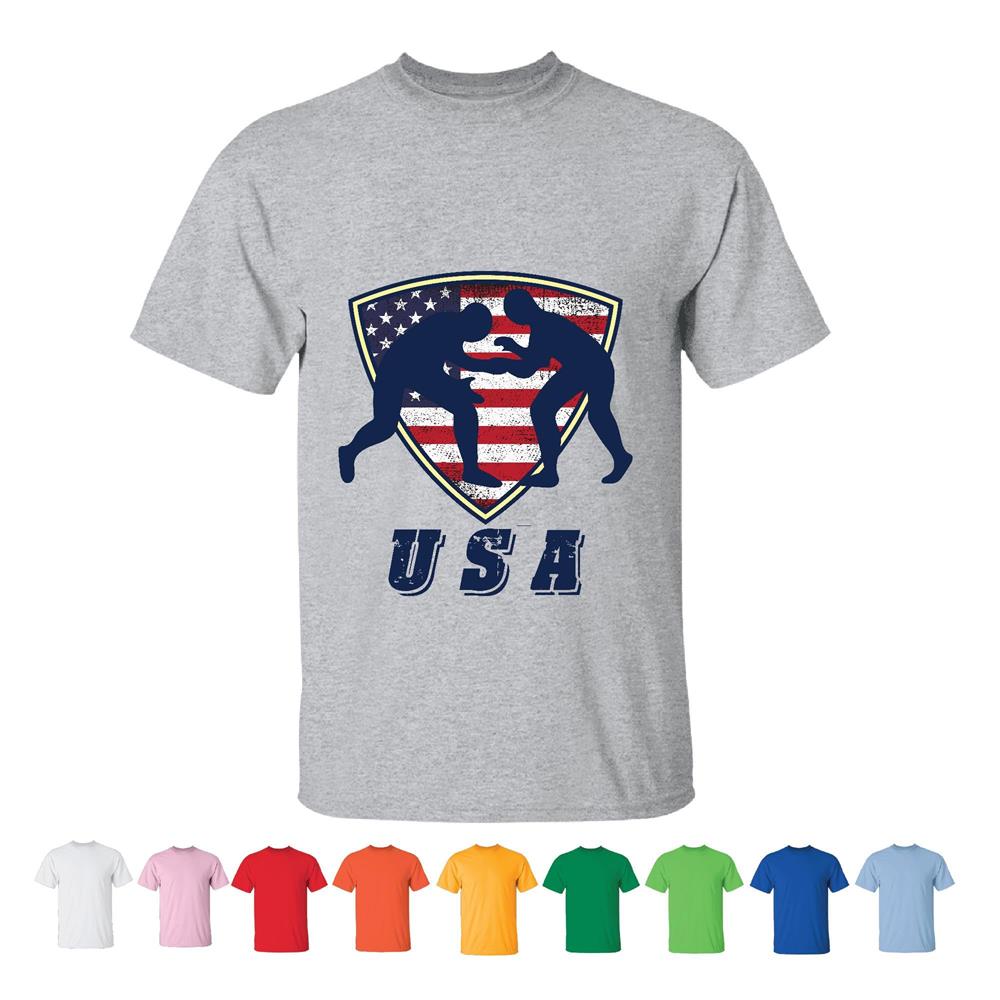 Tee Gift for Proud Wrestlers Showing US Flag Graphic Men Women White Gray T shirt
