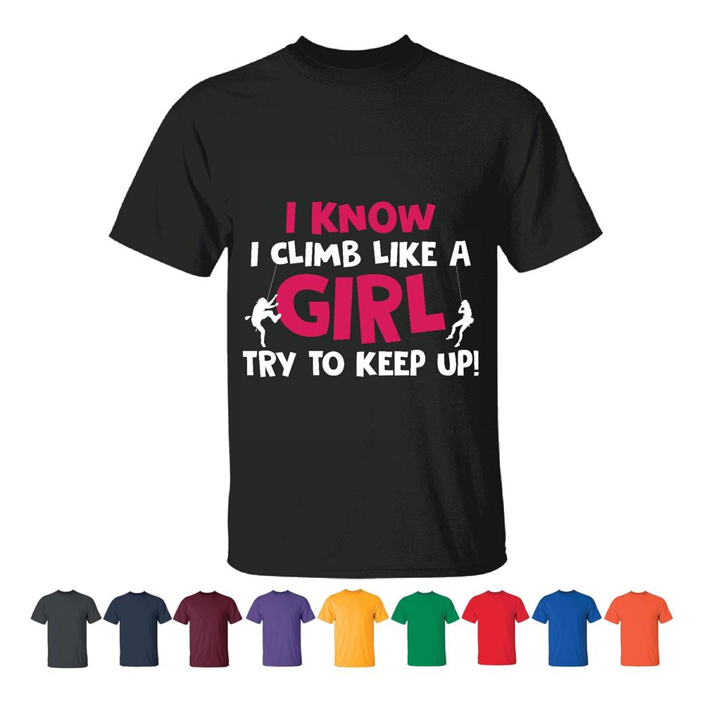 Tee Gift for Rock Climbing Enthusiasts I Know I Climb Like a Girl Try to Keep Up Men Women Black T shirt