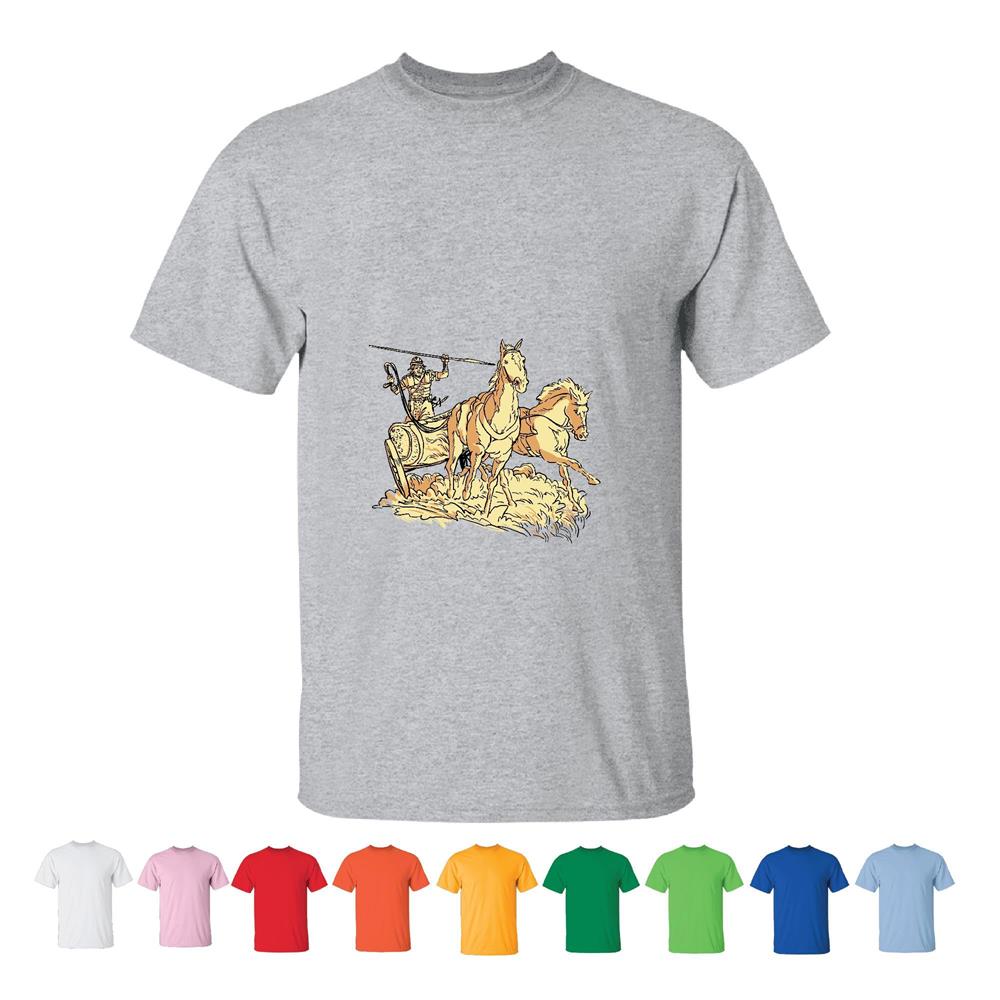 Tee Gift for Roman History Lovers Warrior in Horse Chariot with Spear for Collectors Men Women White Gray T shirt