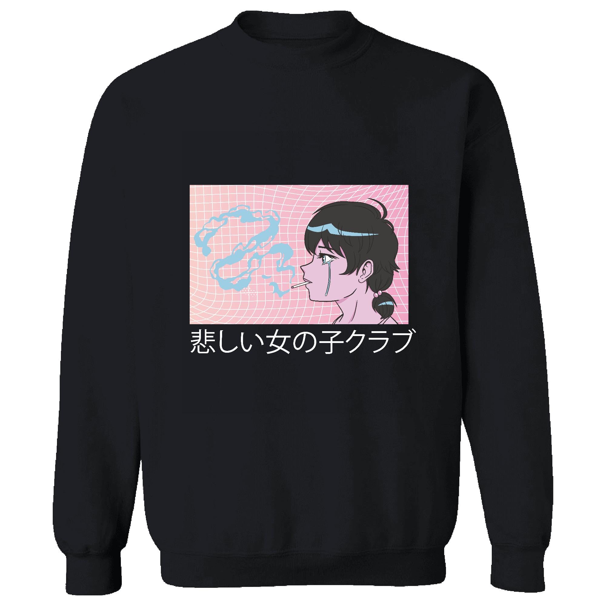 Tee Gift for Sad Anime Fans Cute Crying and Smoking Anime Girl Design Black Muticolor Unisex Sweatshirt