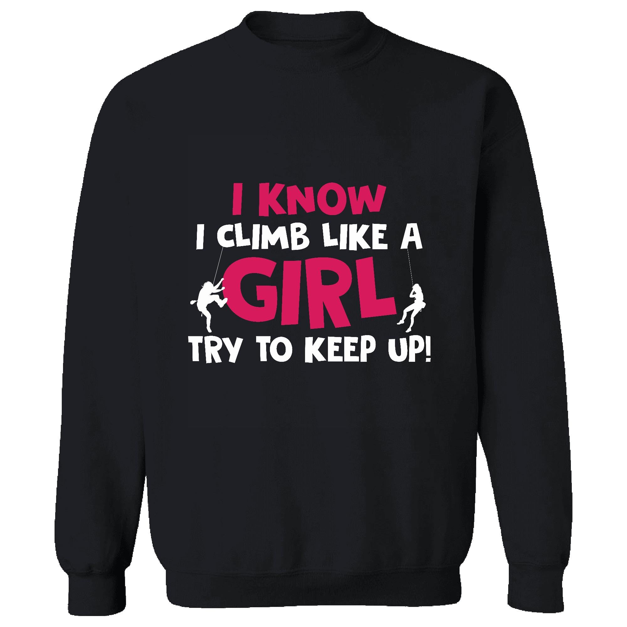 Tee Gift for Rock Climbing Enthusiasts I Know I Climb Like a Girl Try to Keep Up Black Muticolor Unisex Sweatshirt