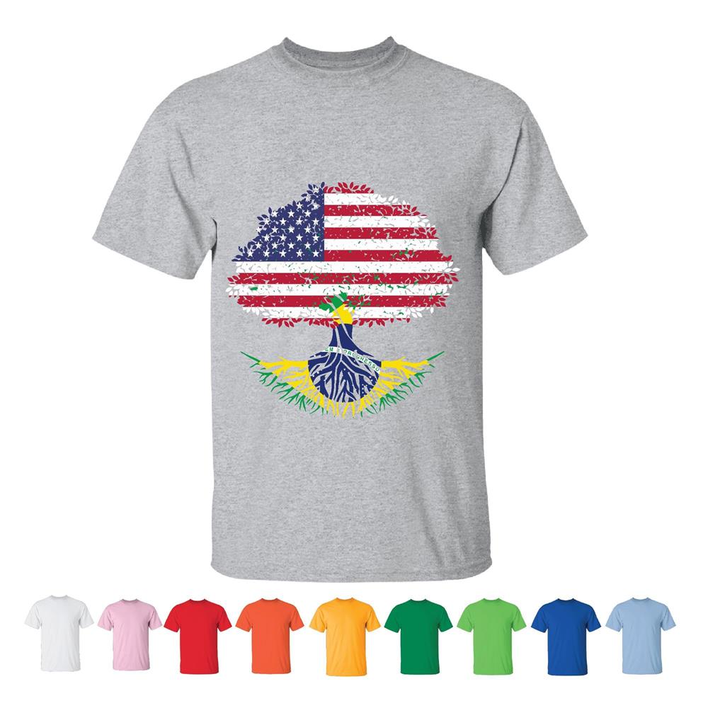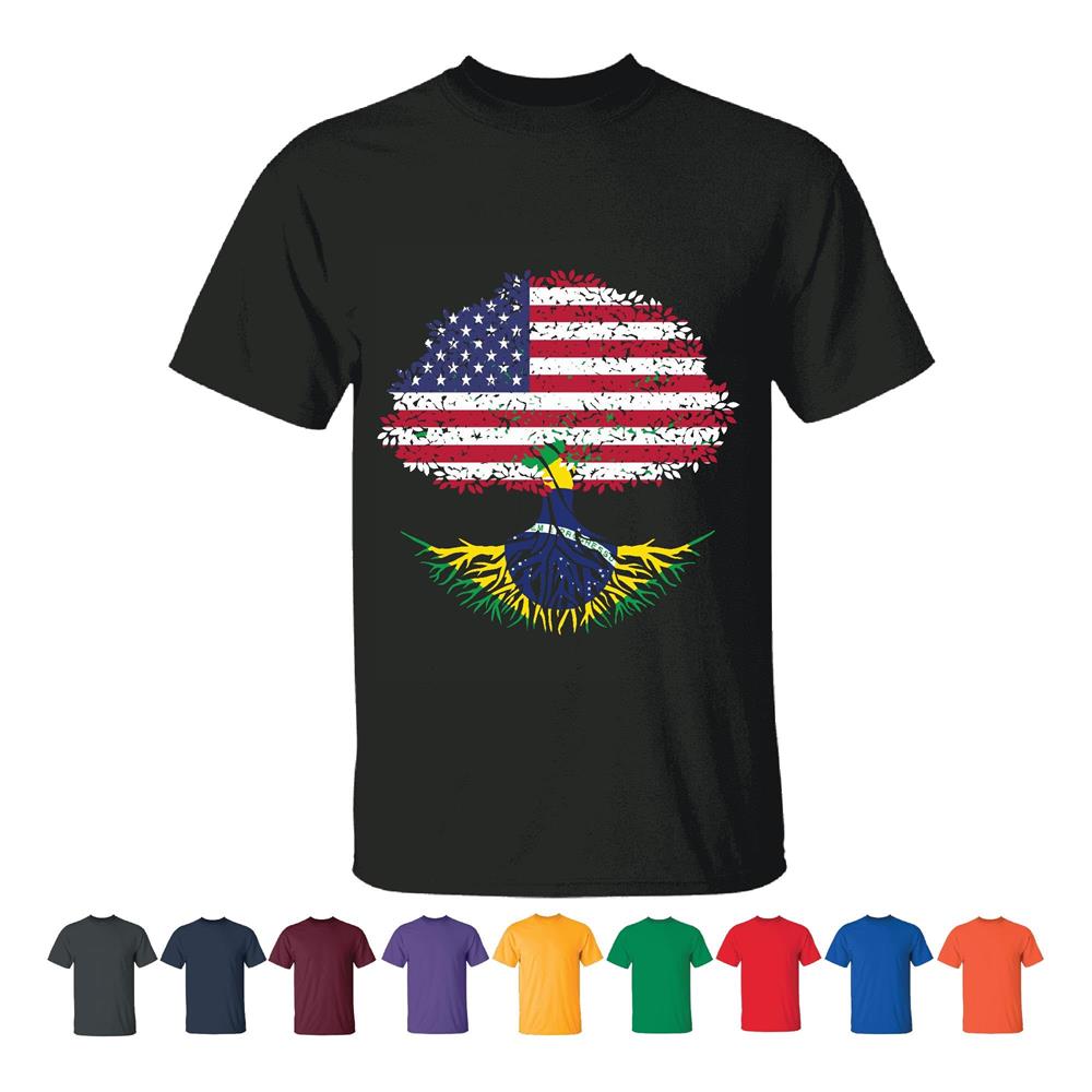 Tee Gift Home Brazilian Naturalization American Flag Roots USA People Men Women White Gray T shirt