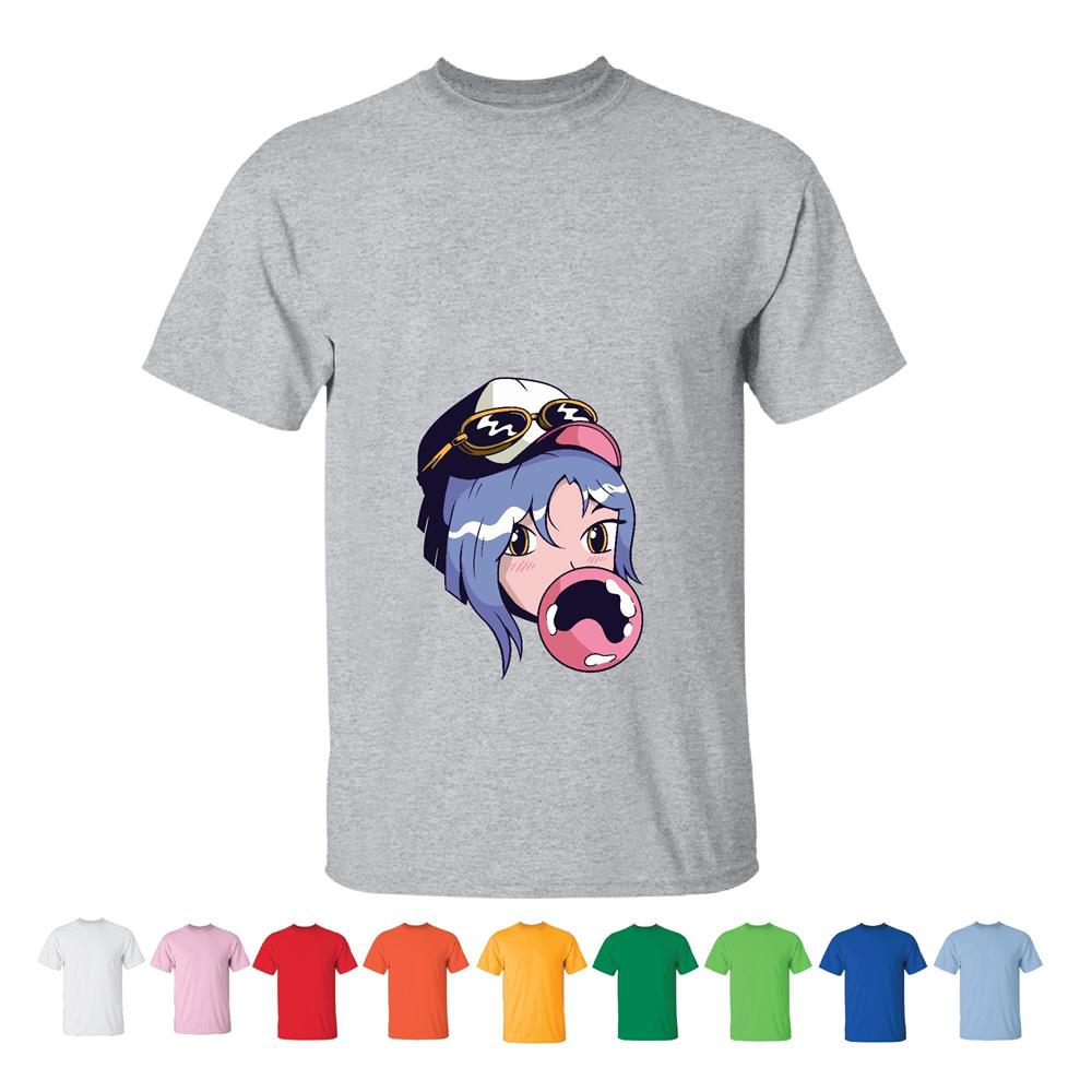 Tee Gift Idea for Anime Fans Cute Illustration of an Anime Girl Chewing Gum for Kids and Teens Men Women White Gray T shirt