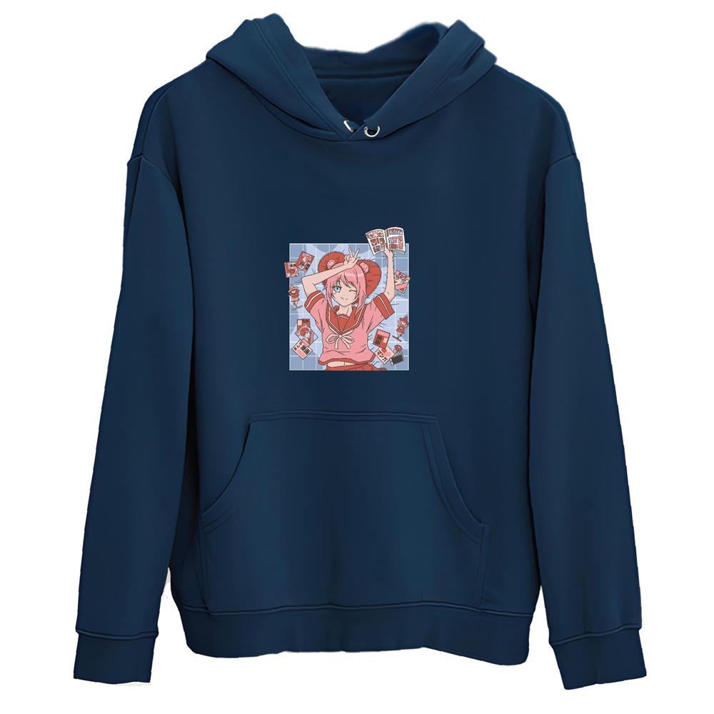 Tee Gift Idea for Anime and Comic Book Fans Anime Girl Surrounded by Comic Books Navy and Muticolor Unisex Hoodie