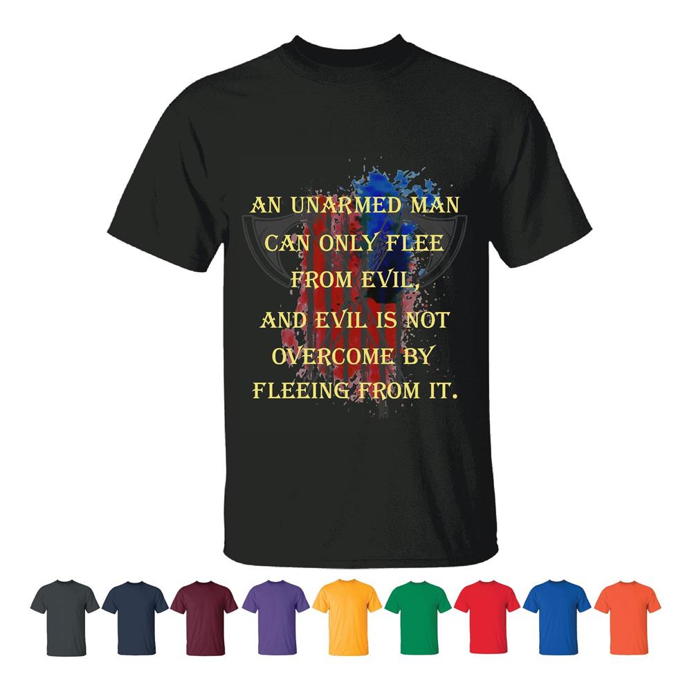 Tee Gift Idea for Men Who Protect from Evil Unarmed Man Fleeing vs Axe Gun Armed Men Men Women Black T shirt