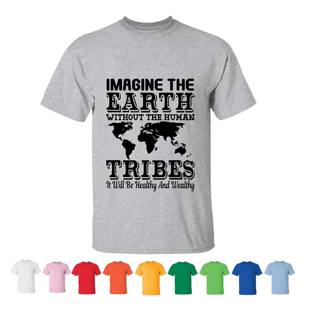 Tee Gift Idea For World Day Imagine Earth Without Humans Healthy and Wealthy Men Women White Gray T shirt
