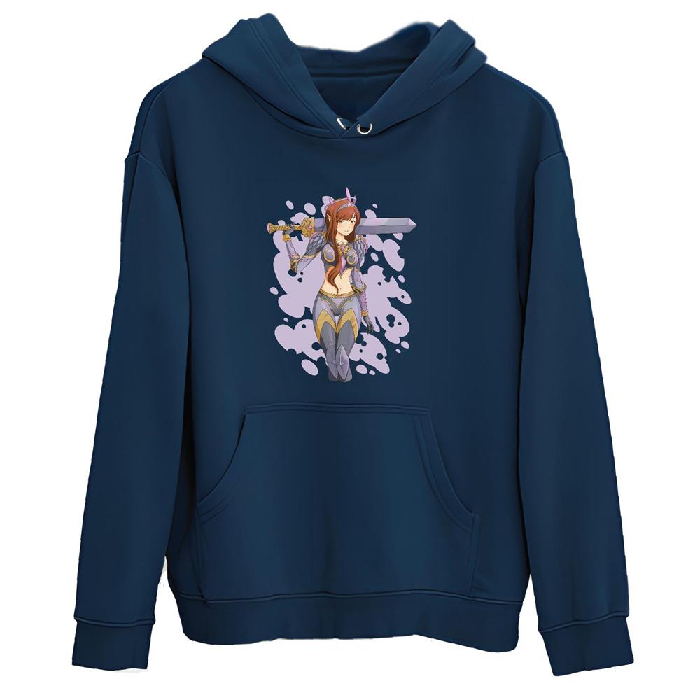 Tee Gift Idea Warrior Elf Girl Sword Medieval Design Hat Perfect for Fantasy Fans Navy and Muticolor Unisex Hoodie