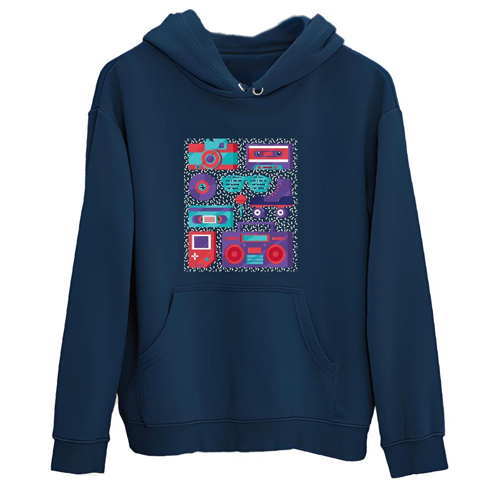 Tee Gift Ideas for 90s Culture Lovers Retro Elements from 80s 90s Navy and Muticolor Unisex Hoodie