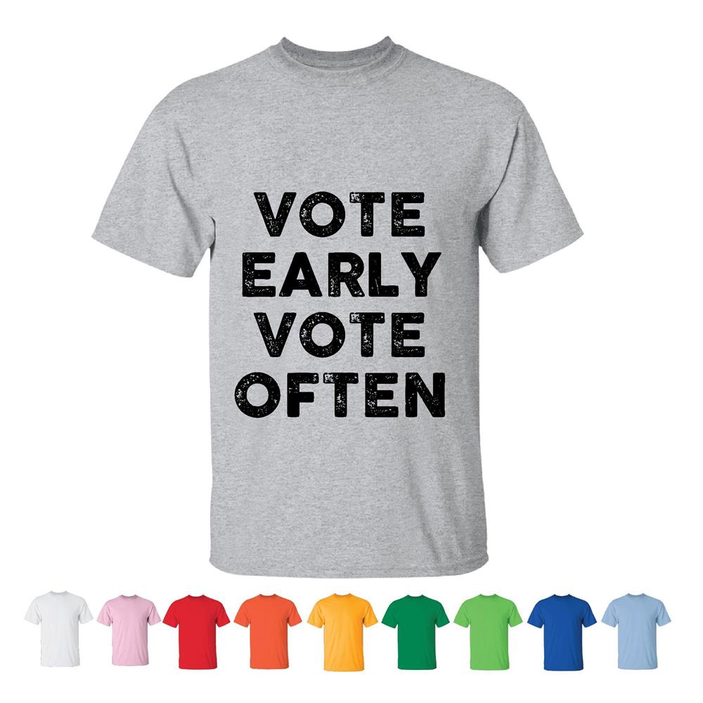 Tee Gifts for Voter Advocates to Promote Early and Often Voting Men Women White Gray T shirt
