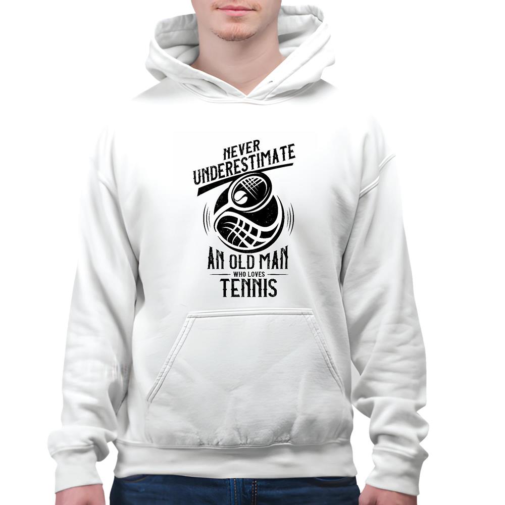 Tennis Player never underestimate old man who loves Tennis for Tennis Lover White and Muticolor Unisex Hoodie