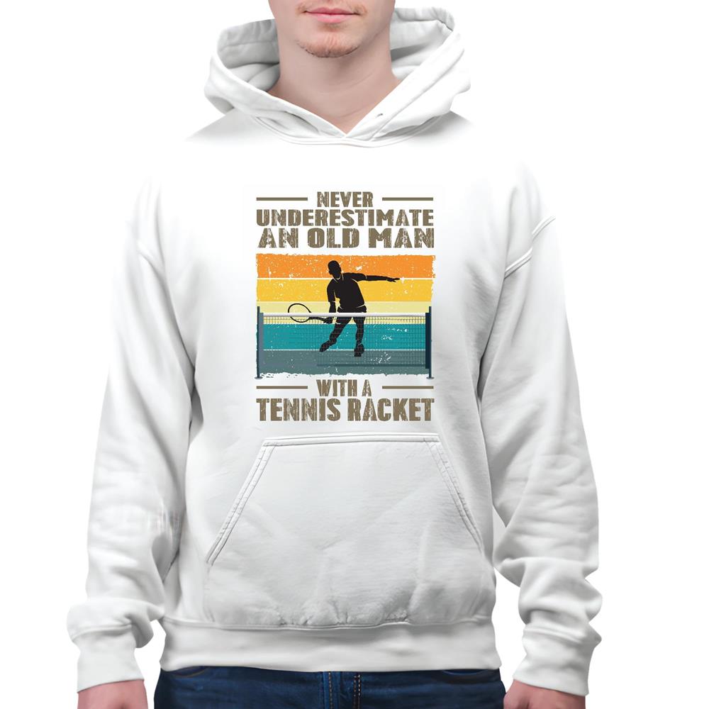 Tennis Player never underestimate an old man with a Tennis Racket White and Muticolor Unisex Hoodie