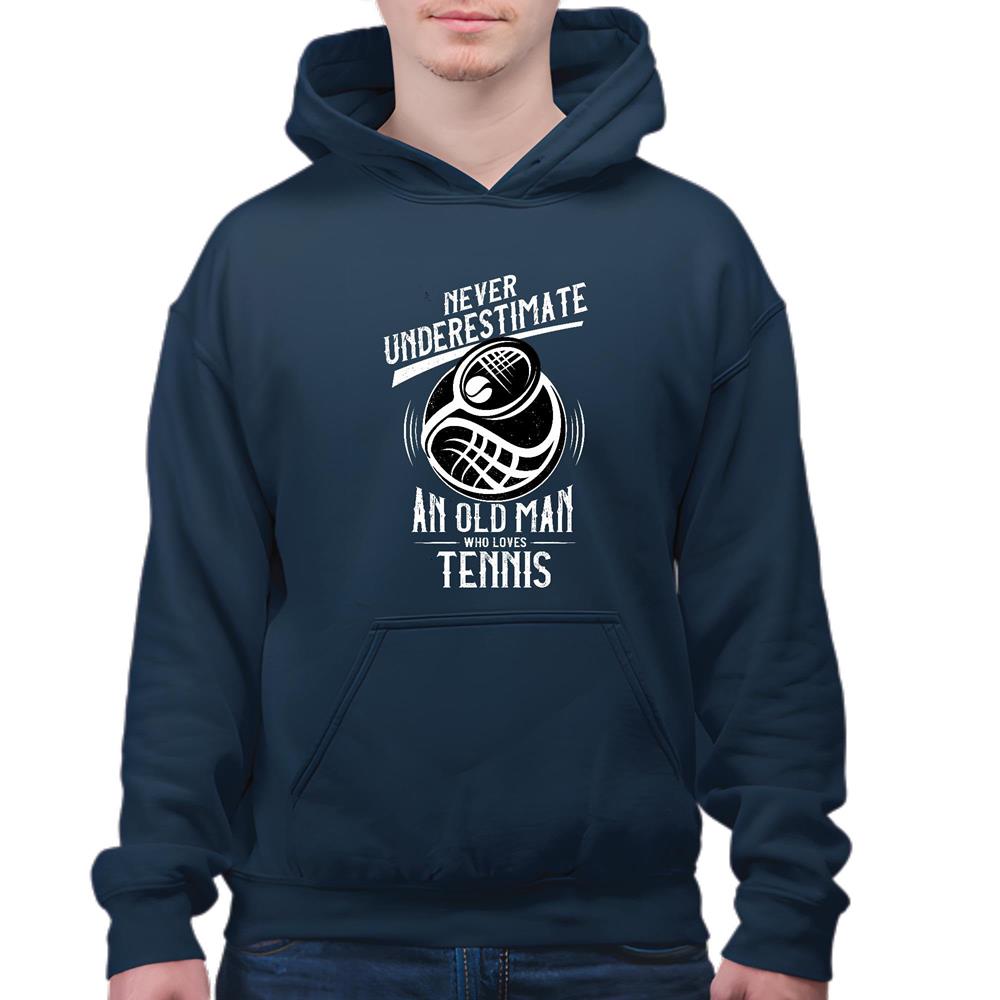 Tennis Player never underestimate old man who loves Tennis for Tennis Lover Navy and Muticolor Unisex Hoodie