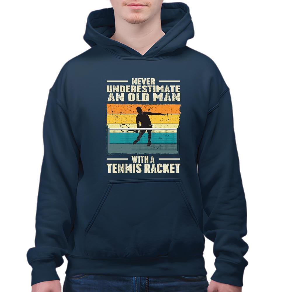 Tennis Player never underestimate an old man with a Tennis Racket Navy and Muticolor Unisex Hoodie