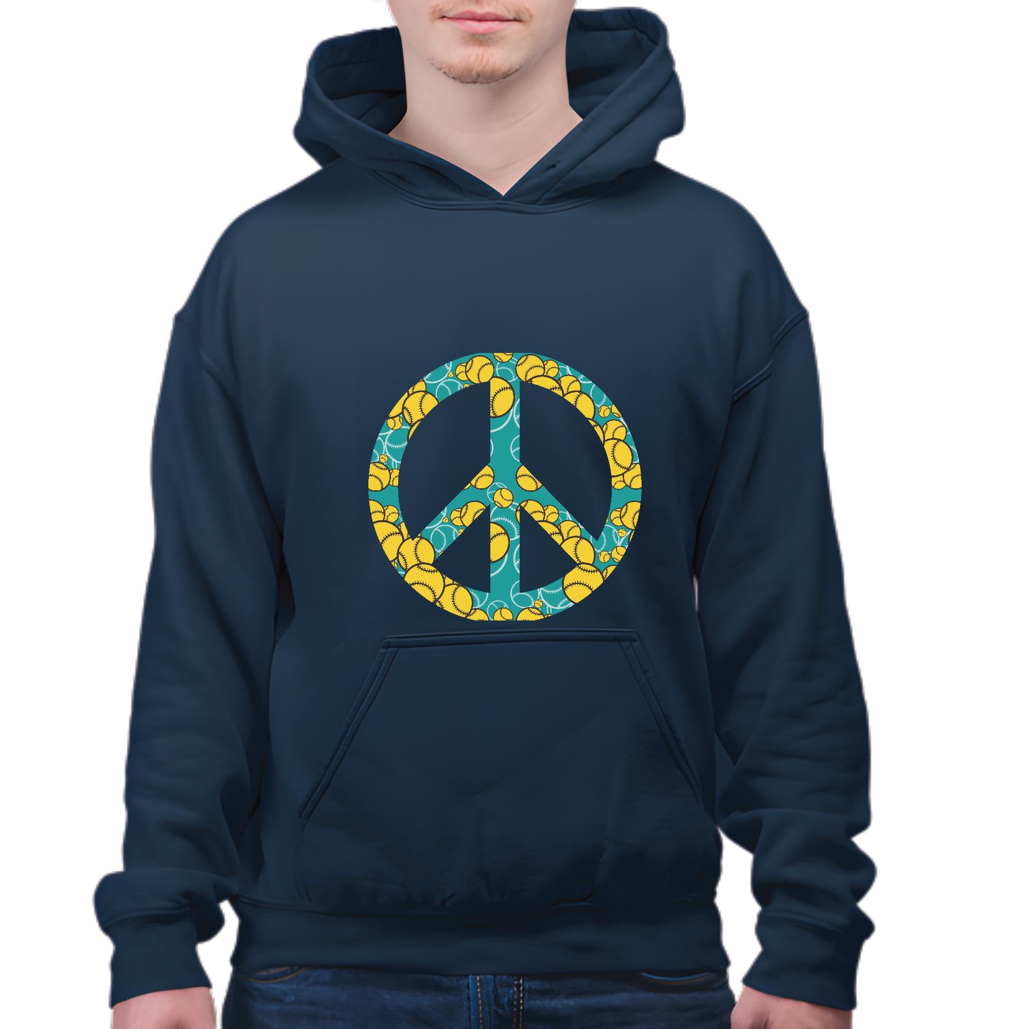 Tennis Peace Sign Gift for Tennis Lovers Unique Design Navy and Muticolor Unisex Hoodie