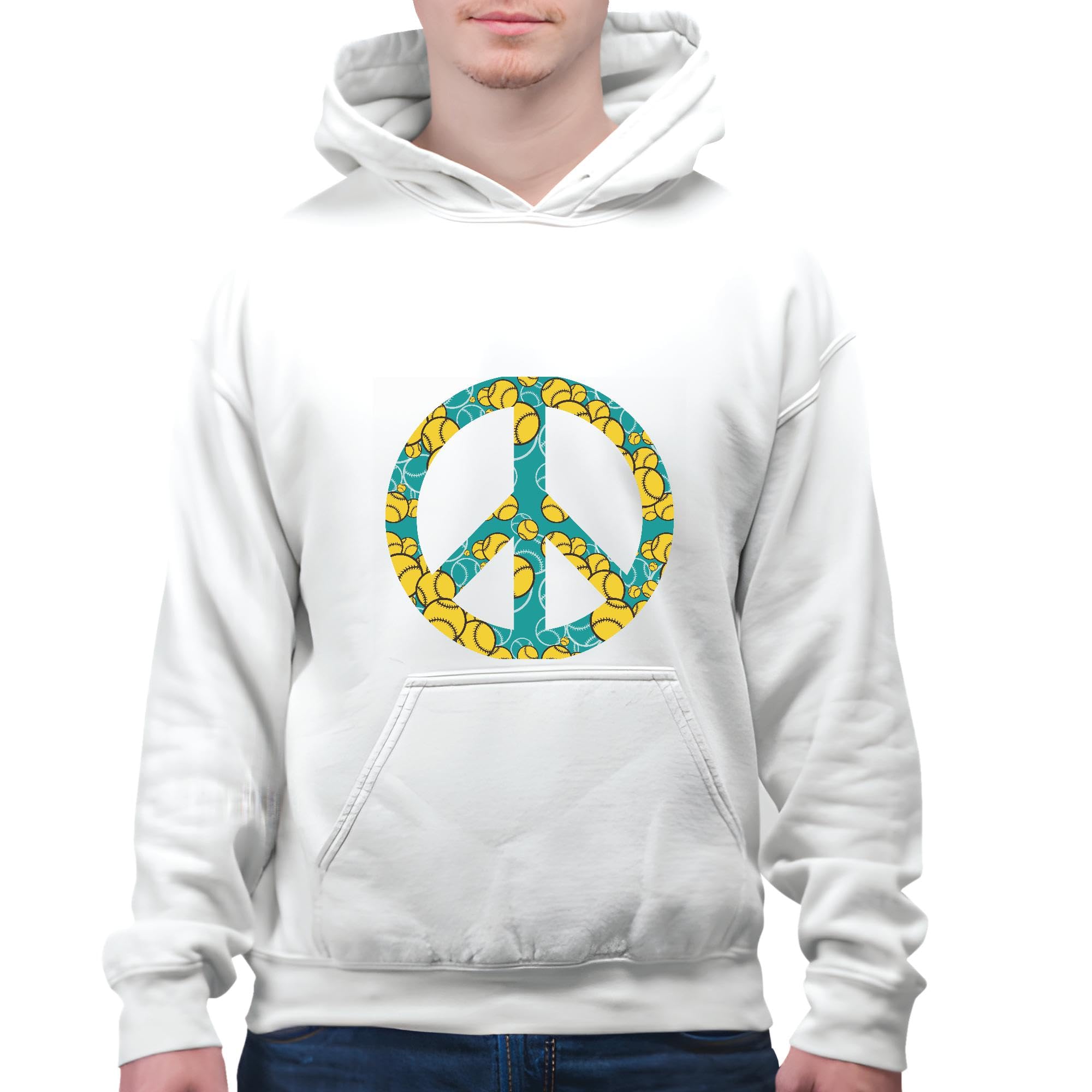 Tennis Peace Sign Gift for Tennis Lovers Unique Design White and Muticolor Unisex Hoodie