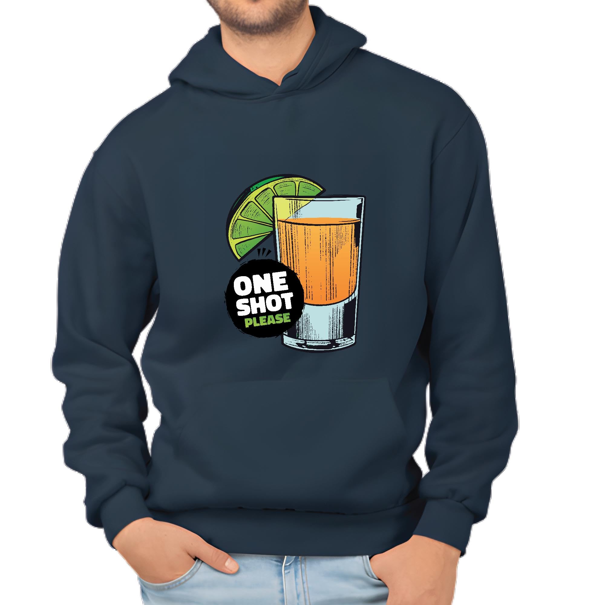 Tequila Shot Gift for Tequila and Lime Alcohol Lovers Navy and Muticolor Unisex Hoodie