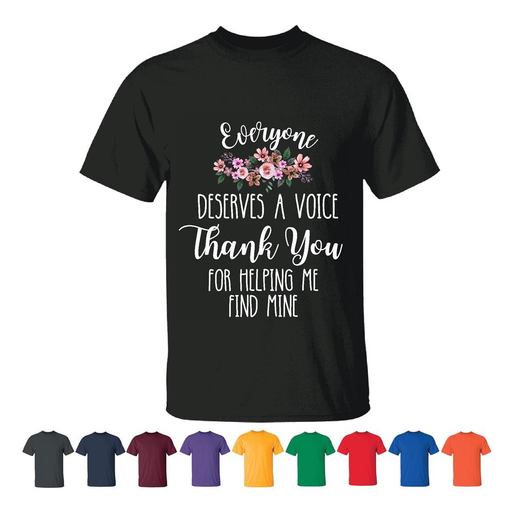 Thank You Gift for Speech Therapist Show Appreciation for Helping Find Voice Men Women Black T shirt