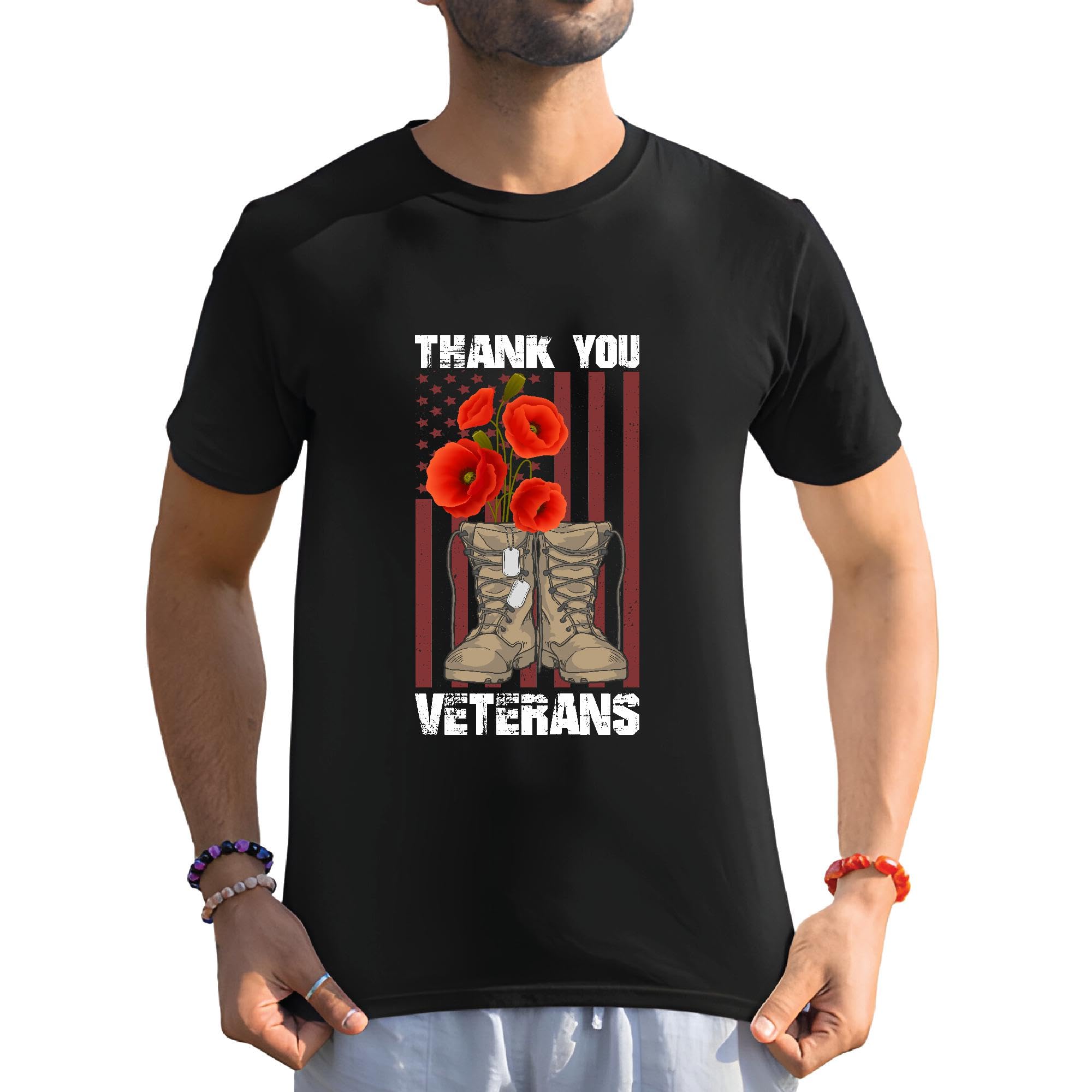 Thank you Veterans Combat Boots Flower Veteran Proud Men Women Black Multicolor T shirt