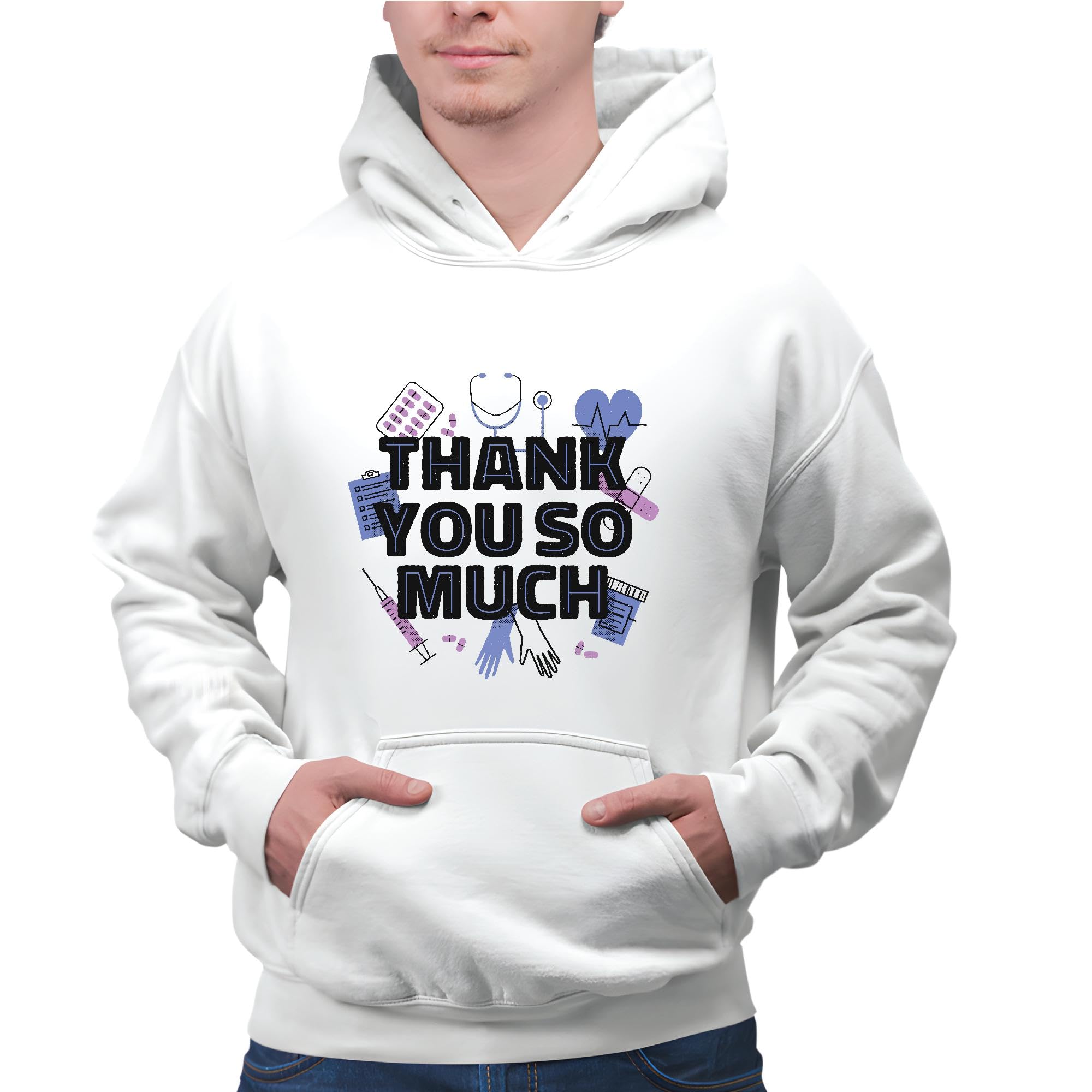 Thank You Gift for Health Care Workers Show Appreciation with Medical Elements Gray and Muticolor Unisex Hoodie