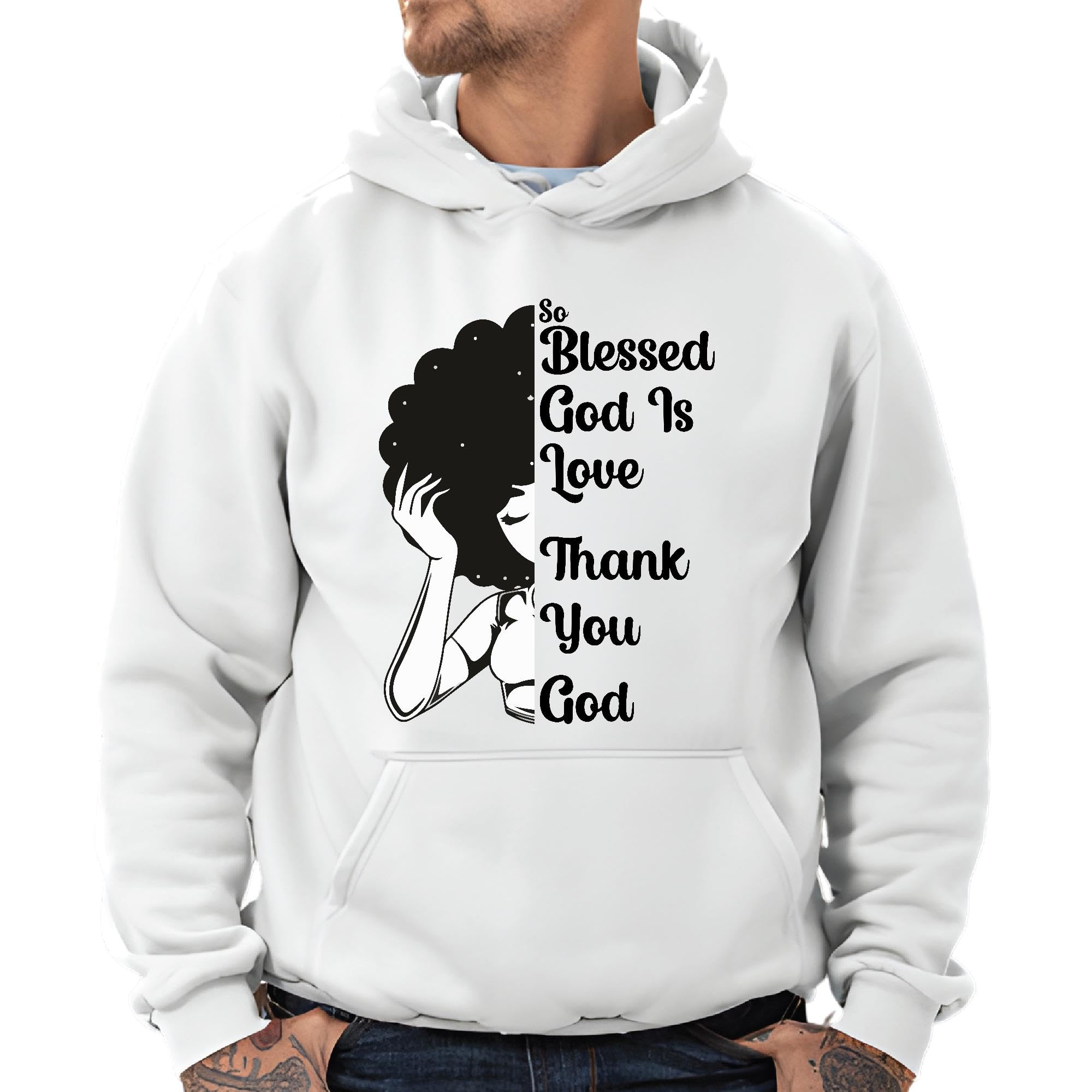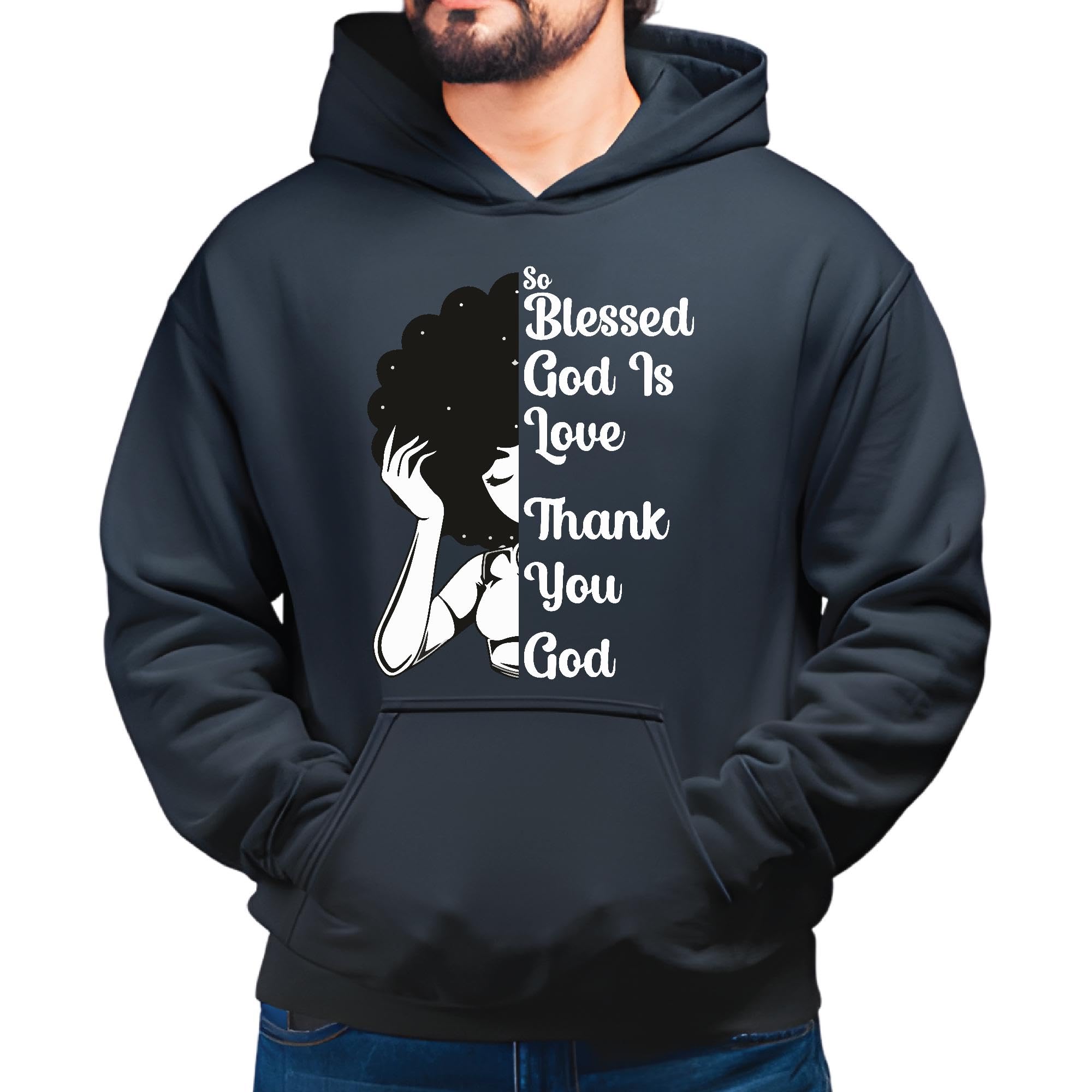 Thank You God Message for Girls Women Ladies Wives with Curl Hair Girl Graphic Black and Muticolor Unisex Hoodie