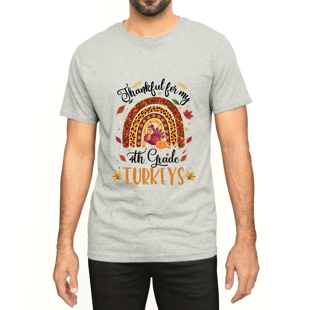 Thanksgiving Gift for 4th Grade Teacher Turkeys Fall Appreciation Men Women White Gray Multicolor T shirt
