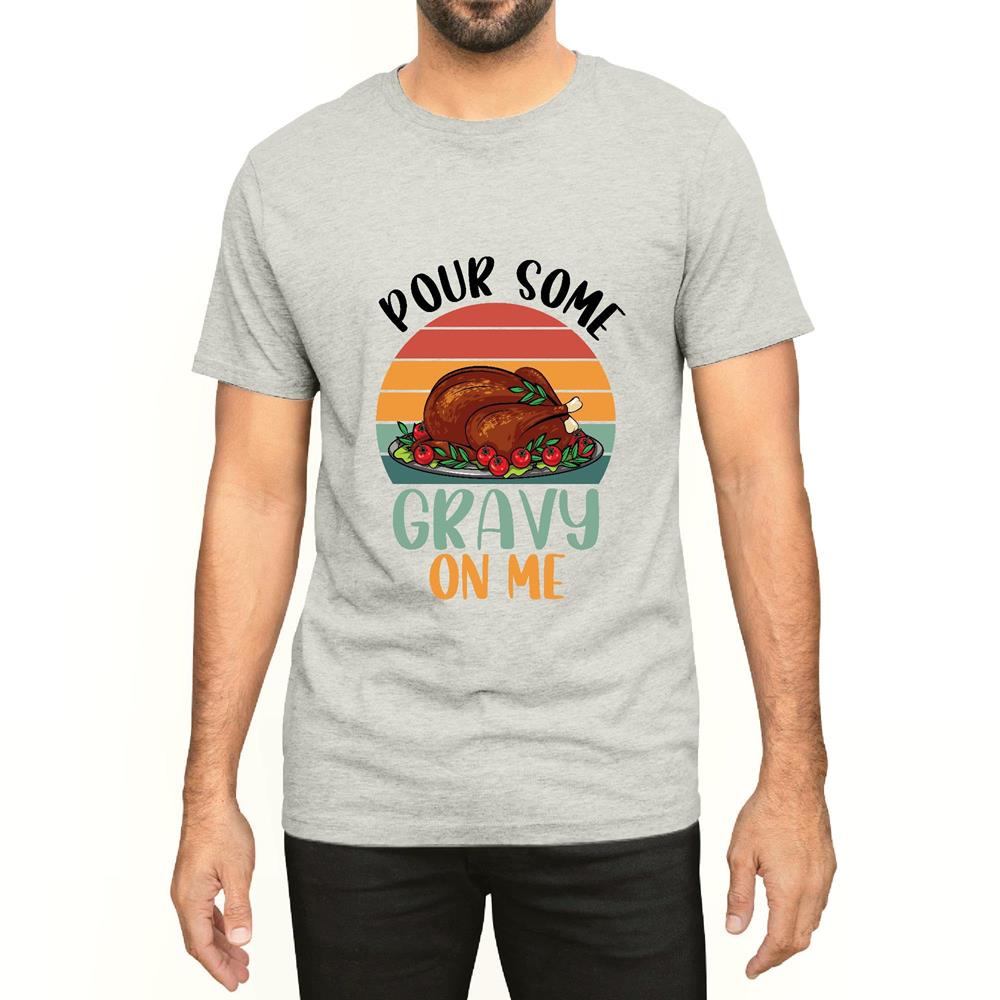 Thanksgiving Gift for EveryonePour Some Gravy on Me Happy Turkey Day Men Women White Gray Multicolor T shirt