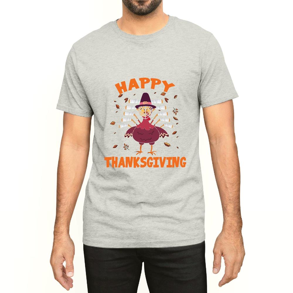 Thanksgiving Gift for Lovers Turkey Playing Men Women White Gray Multicolor T shirt
